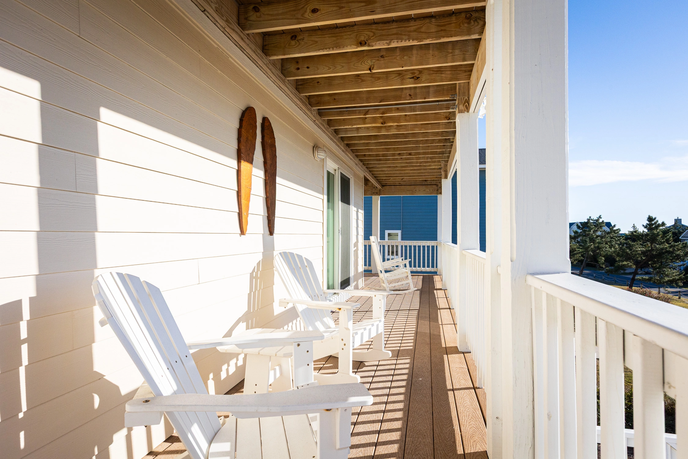 "The ocean view with the top deck and all the seating for the whole family to hang out up there! So nice to just walk right down to the beach and not have to drive or pack up coolers…"