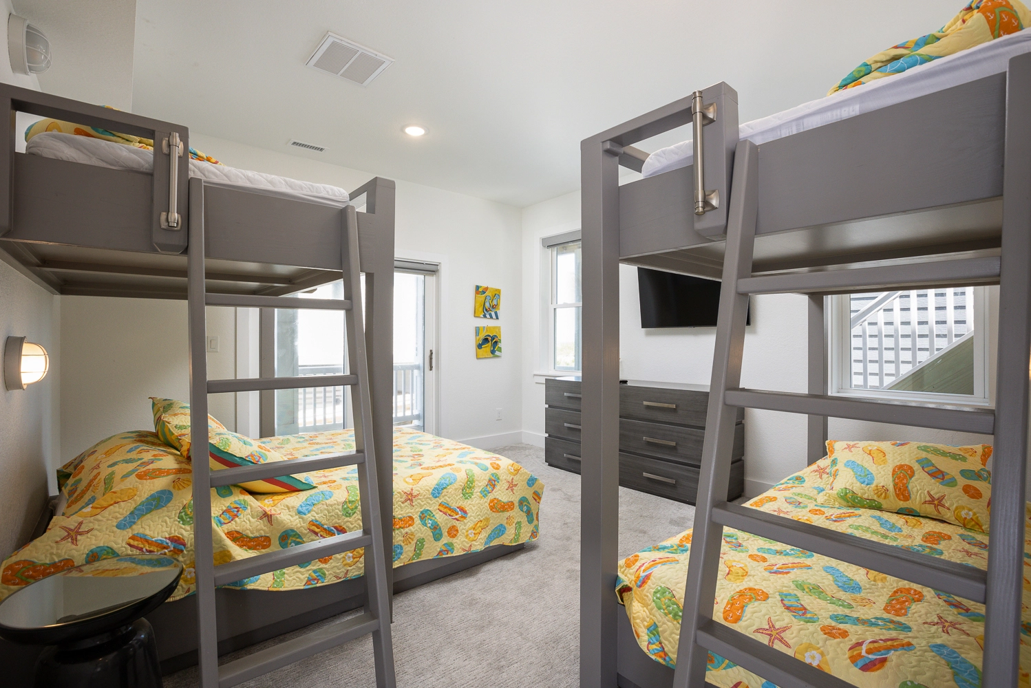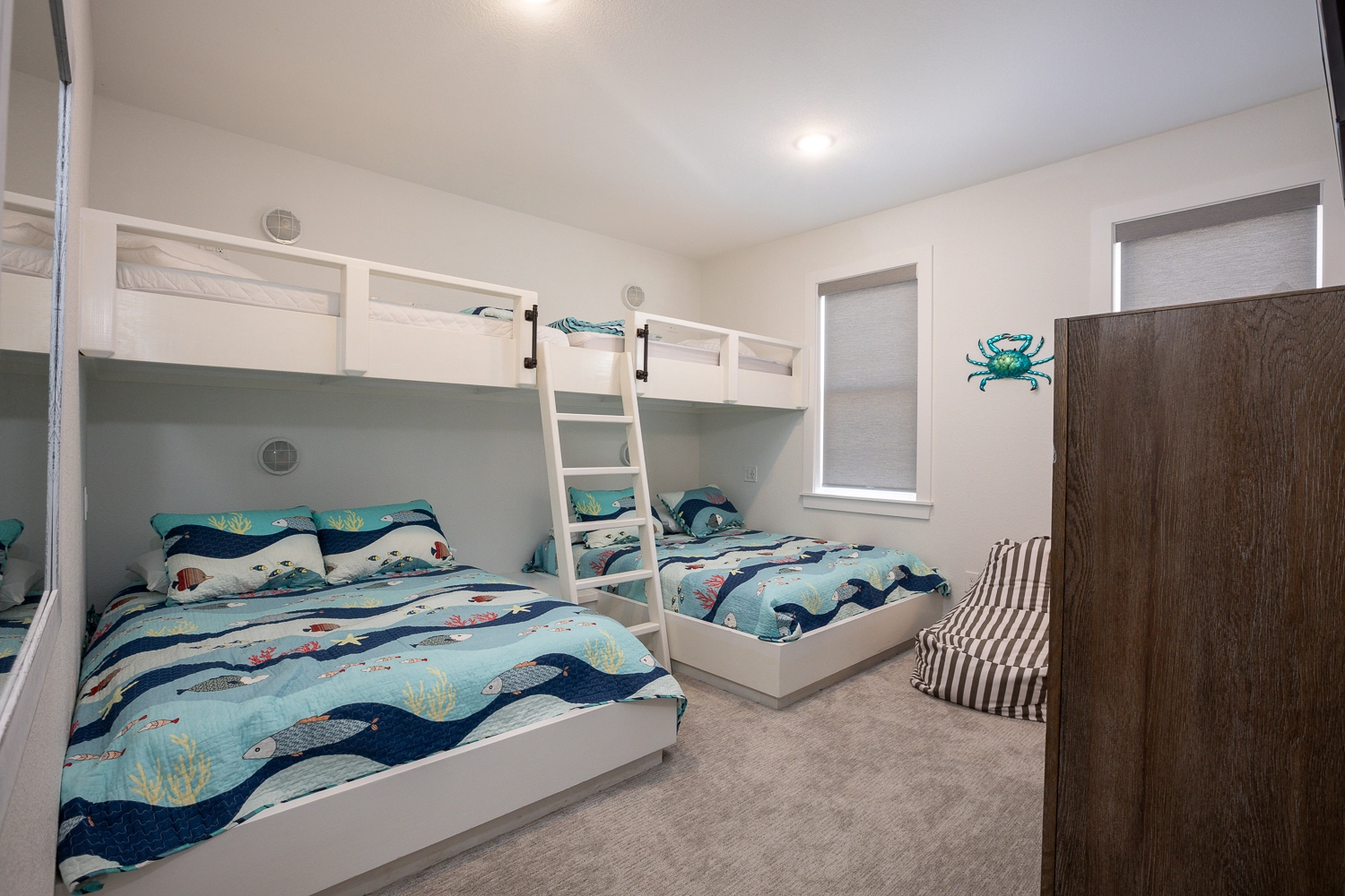 2 Bunk Sets with Twins over Queens, Shower/tub combo