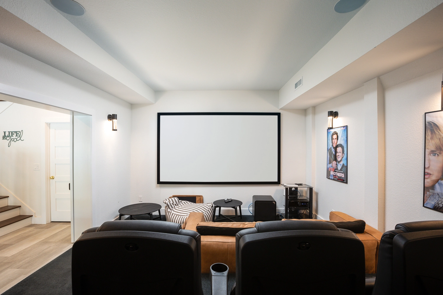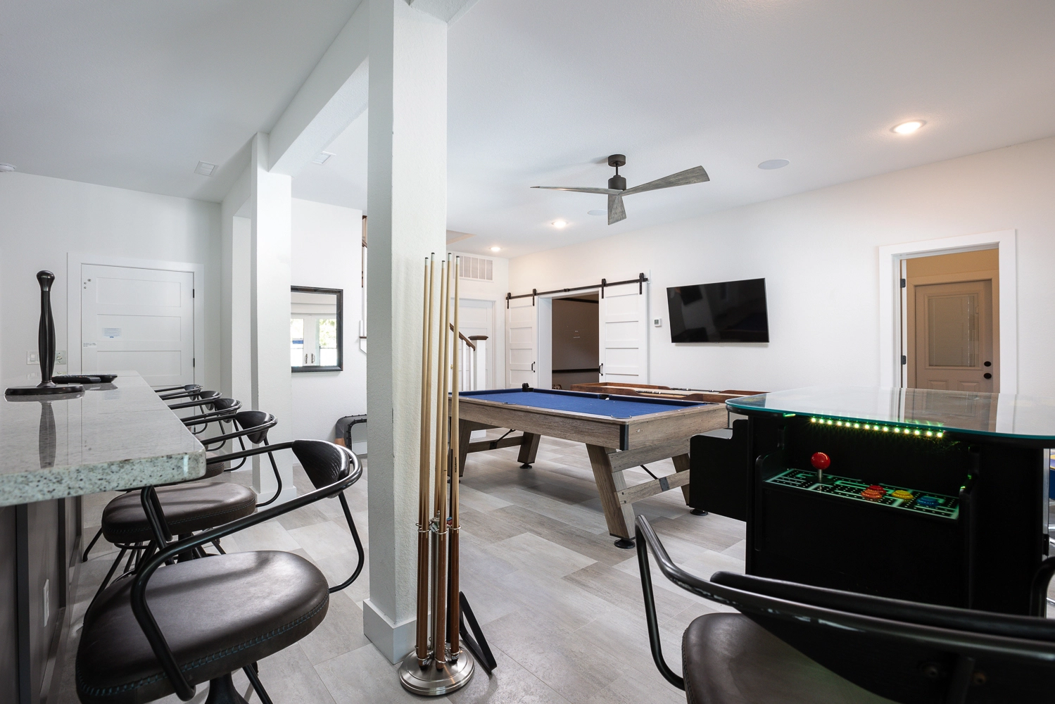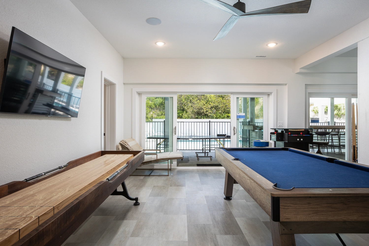 Rec room with pool table and kitchenette; theatre room.