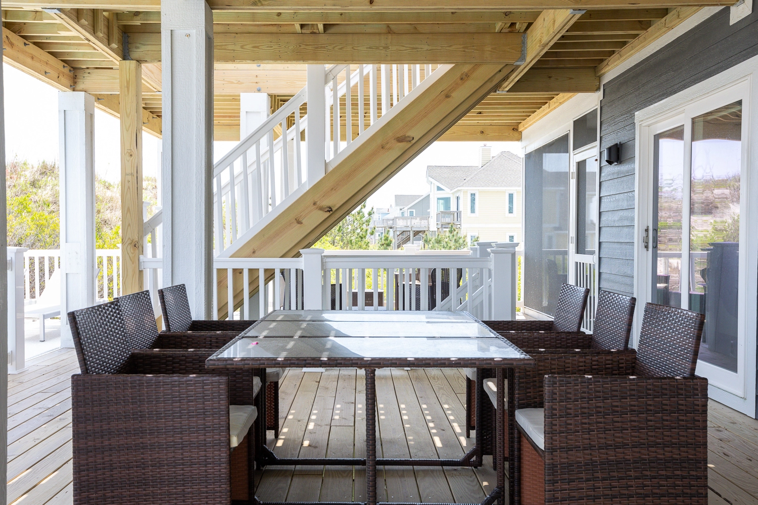 "Good layout providing privacy/quiet to all bedrooms. Convenient beach access with good quality and abundance of beach chairs. Uniform quality in all master bedrooms, bathrooms and bunk rooms."