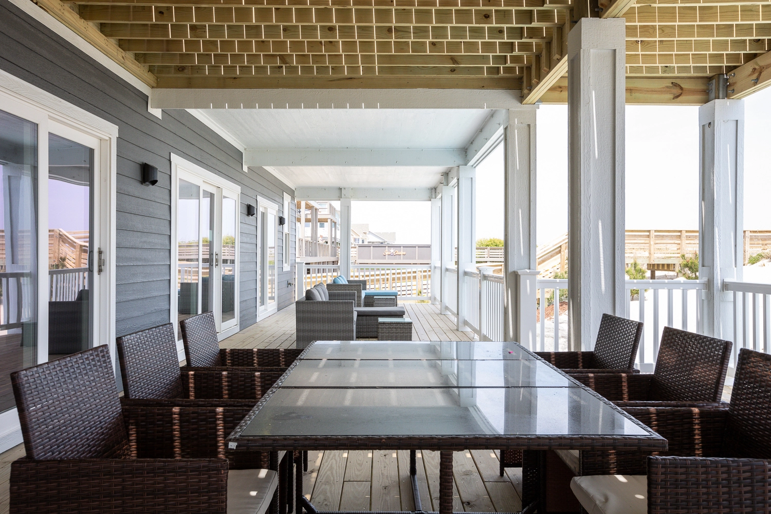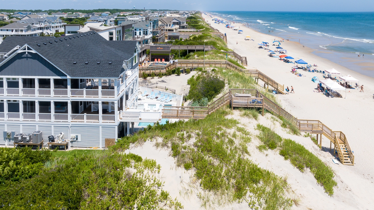 "Perfect size for large group (24) and still a ton of space to read and get away from the crowds. Well equipped and loved being right on the beach. Great decks that were nicely furnished. 3 refrigerators and a butlers kitchen - who could ask for more."
