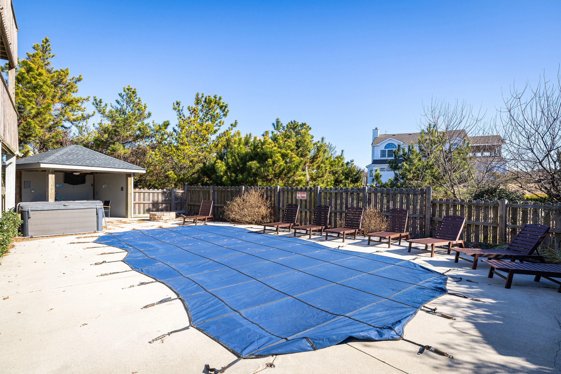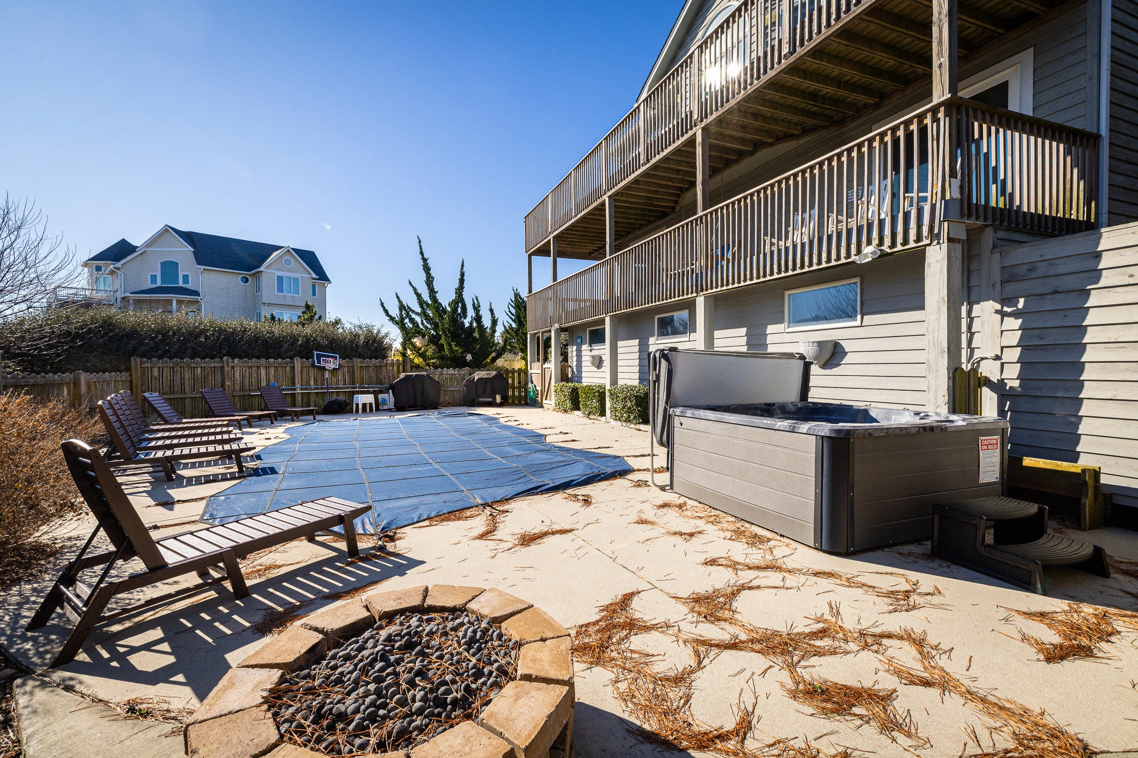 Private saltwater pool, hot tub, tikibar, two gas grills, outdoor shower, and cornhole set.