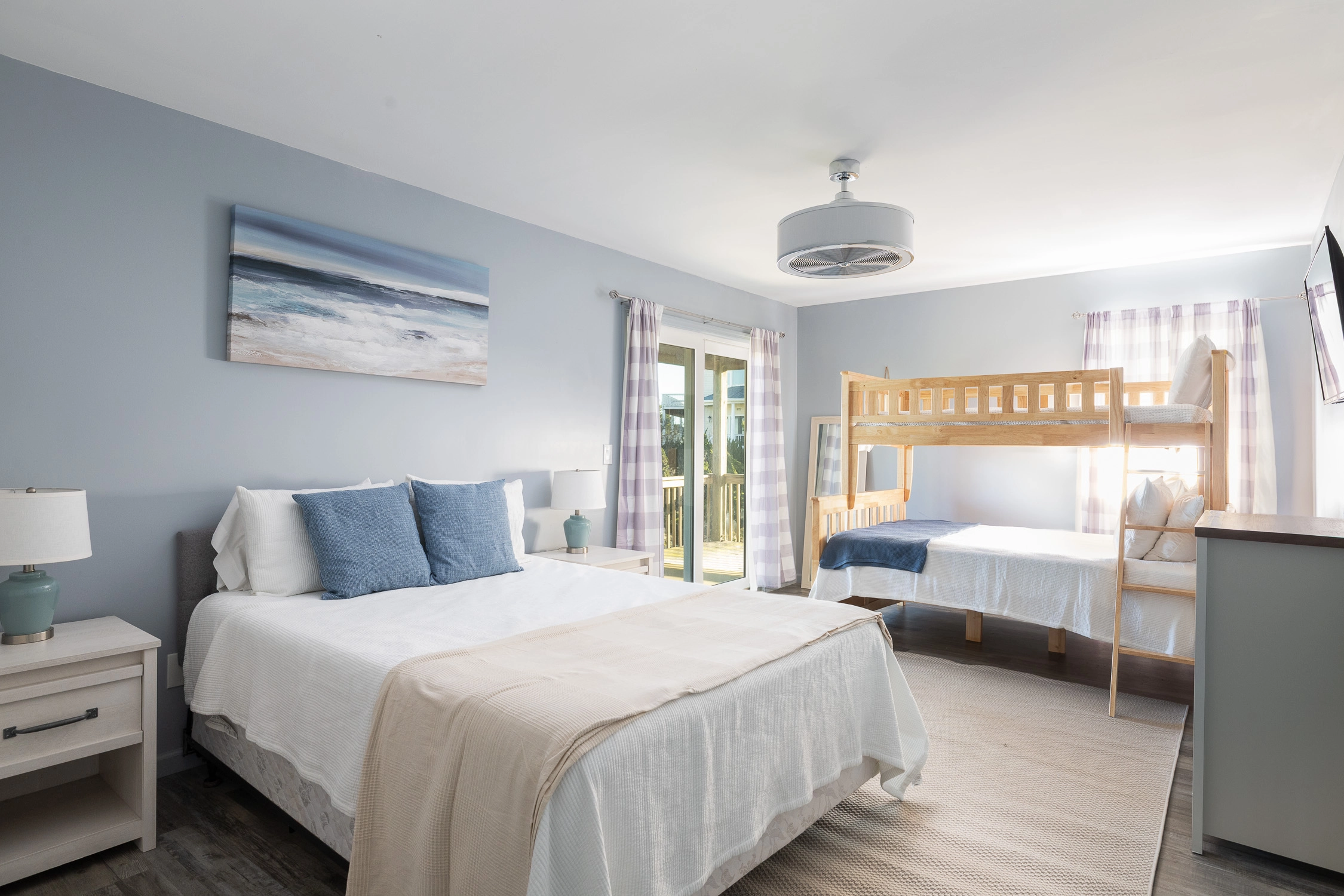 Queen, Duo Bunk Set, Shared bath with Room 3, Standing shower, Deck access