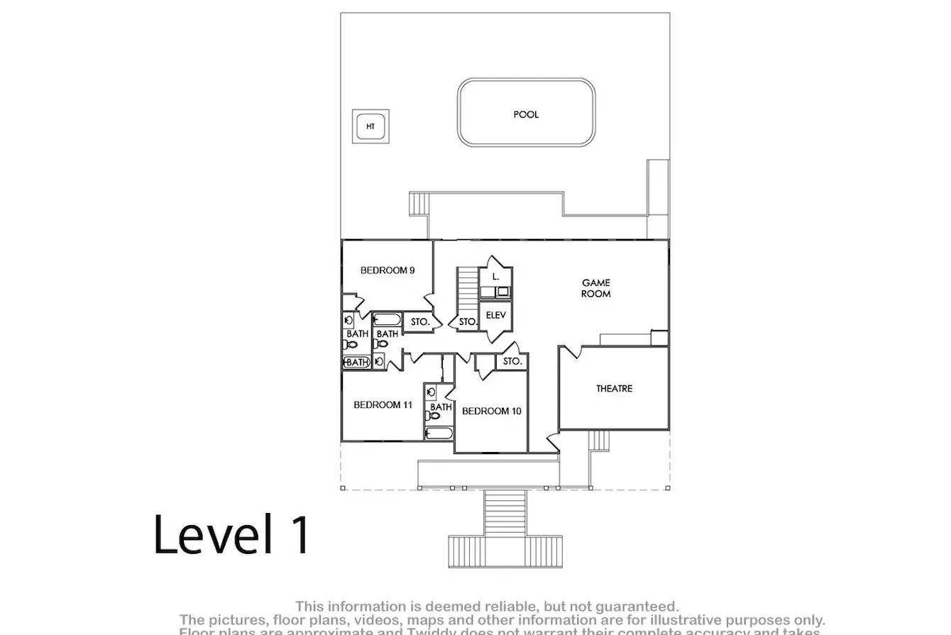 Elevator, business-grade wifi with access points on each level, unlimited Netflix streaming, private pool with a shallow wading area, multiple TVs.