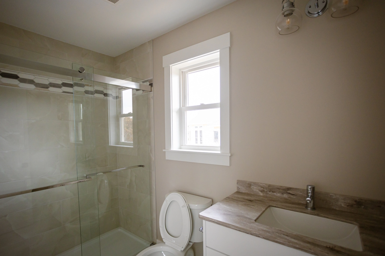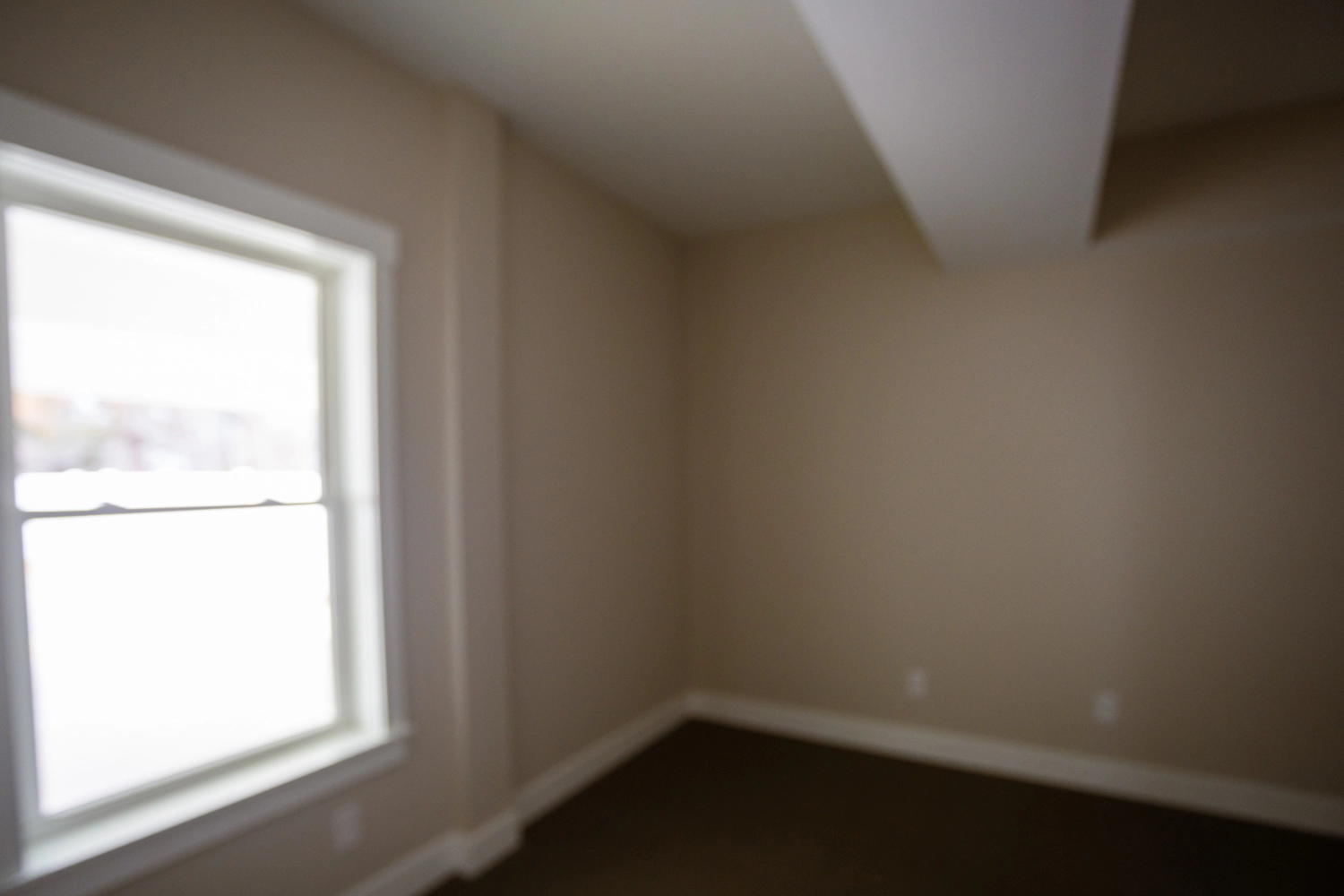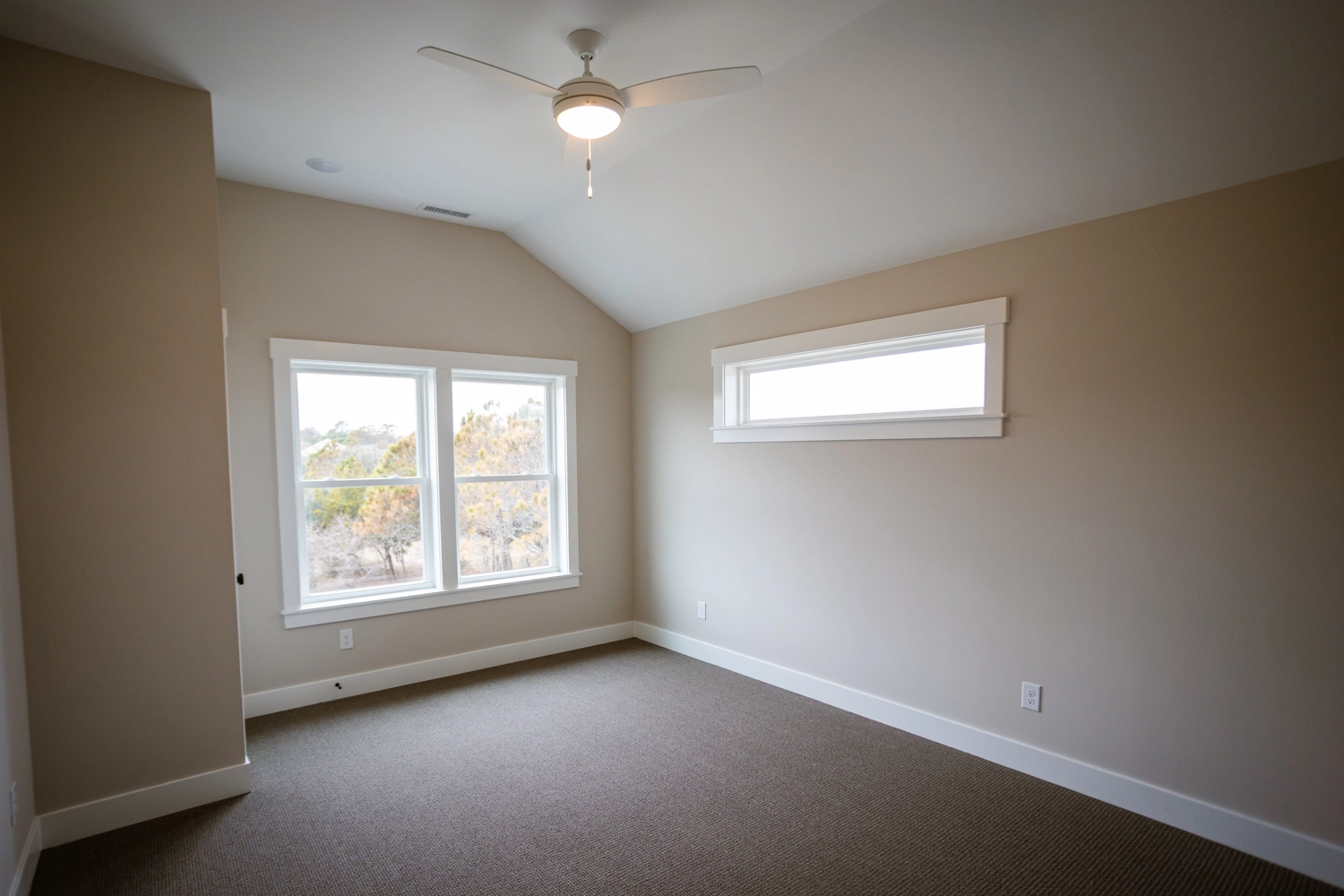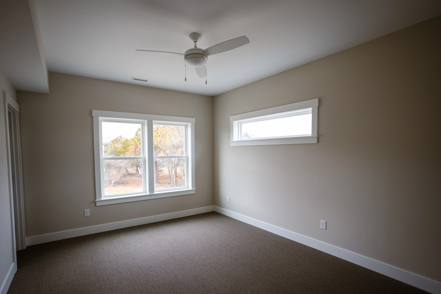 Great room with electric fireplace; kitchen with two stoves, two refrigerators, and two dishwashers; dining area.