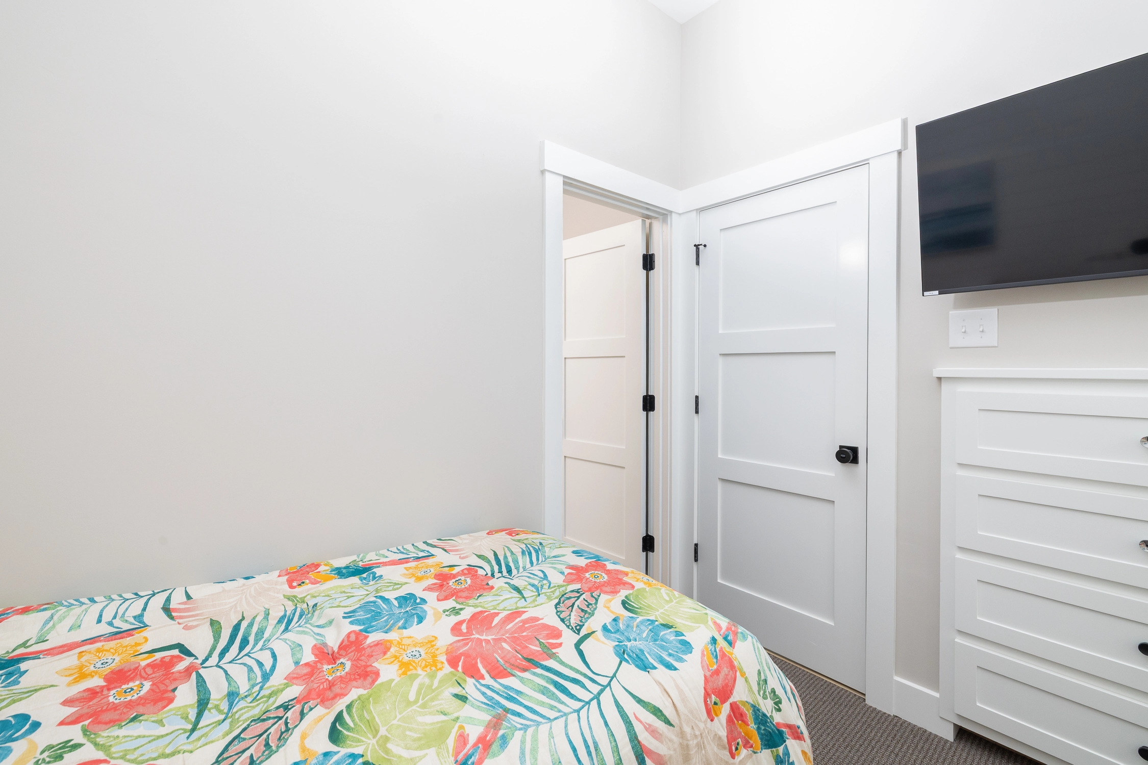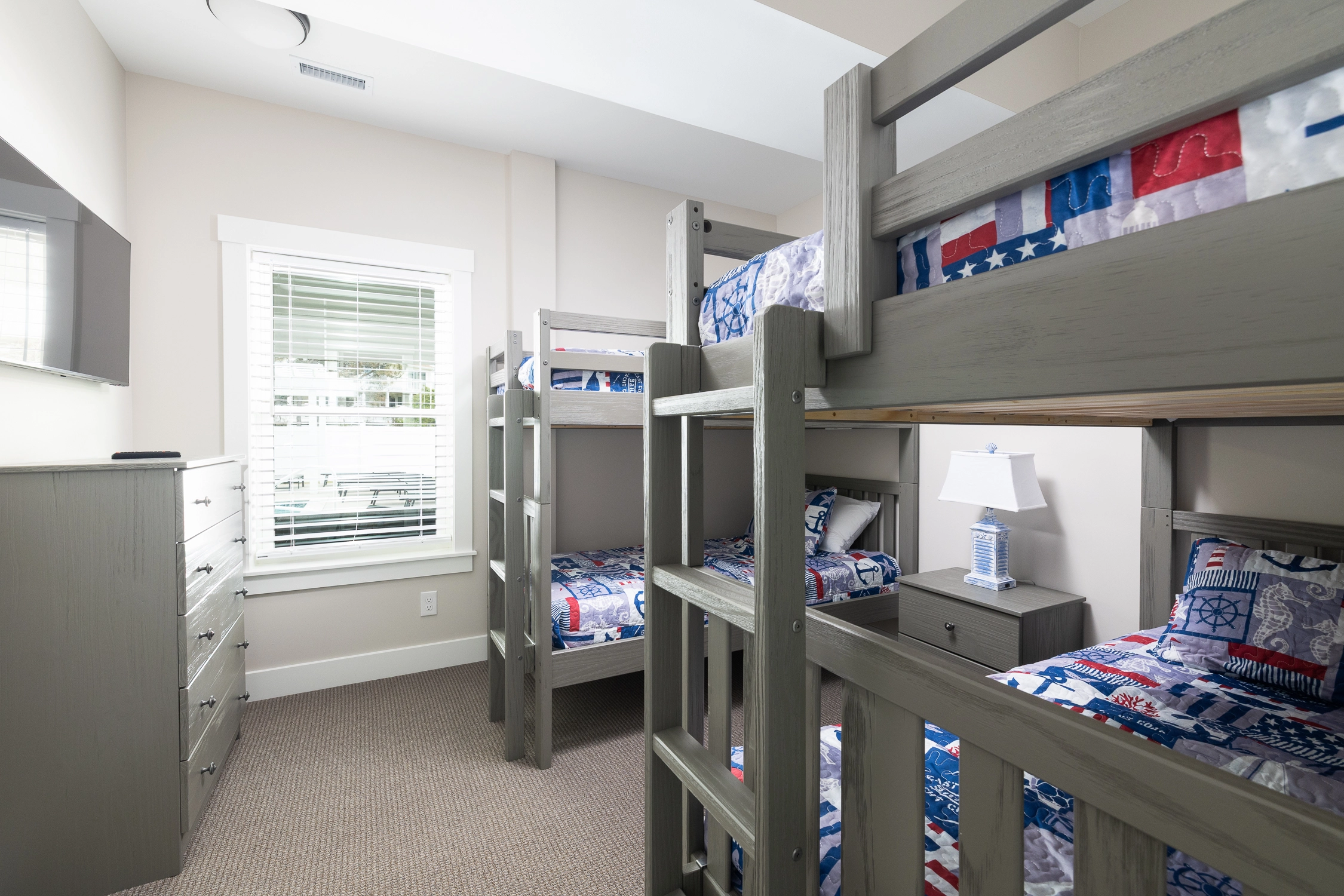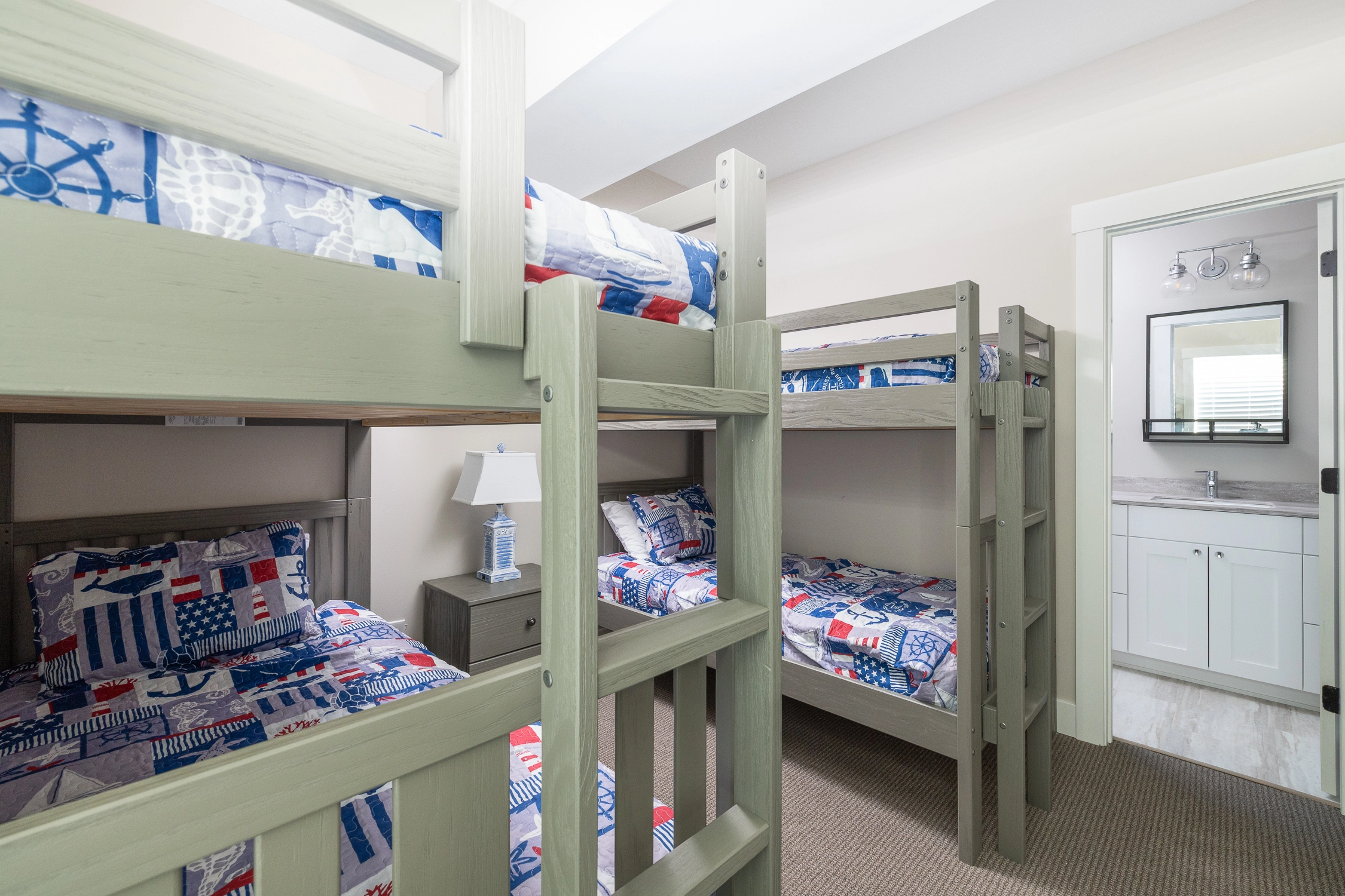All twelve bedrooms are master suites, each with a private bathroom, allowing everyone to have their own space to retreat to after a long day outside. There are three bedrooms on the top floor, five bedrooms on the middle floor, and three bedrooms on the ground floor.