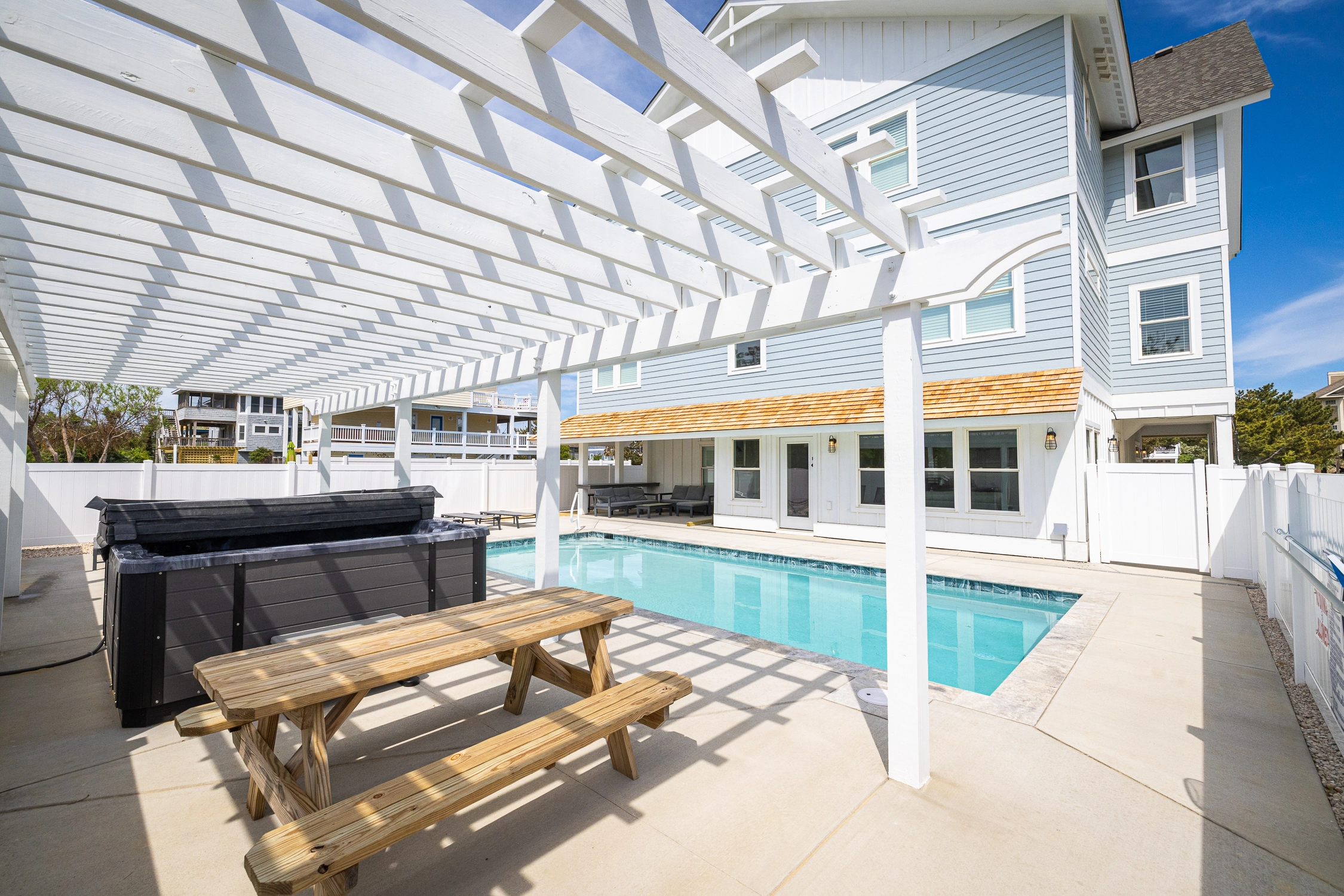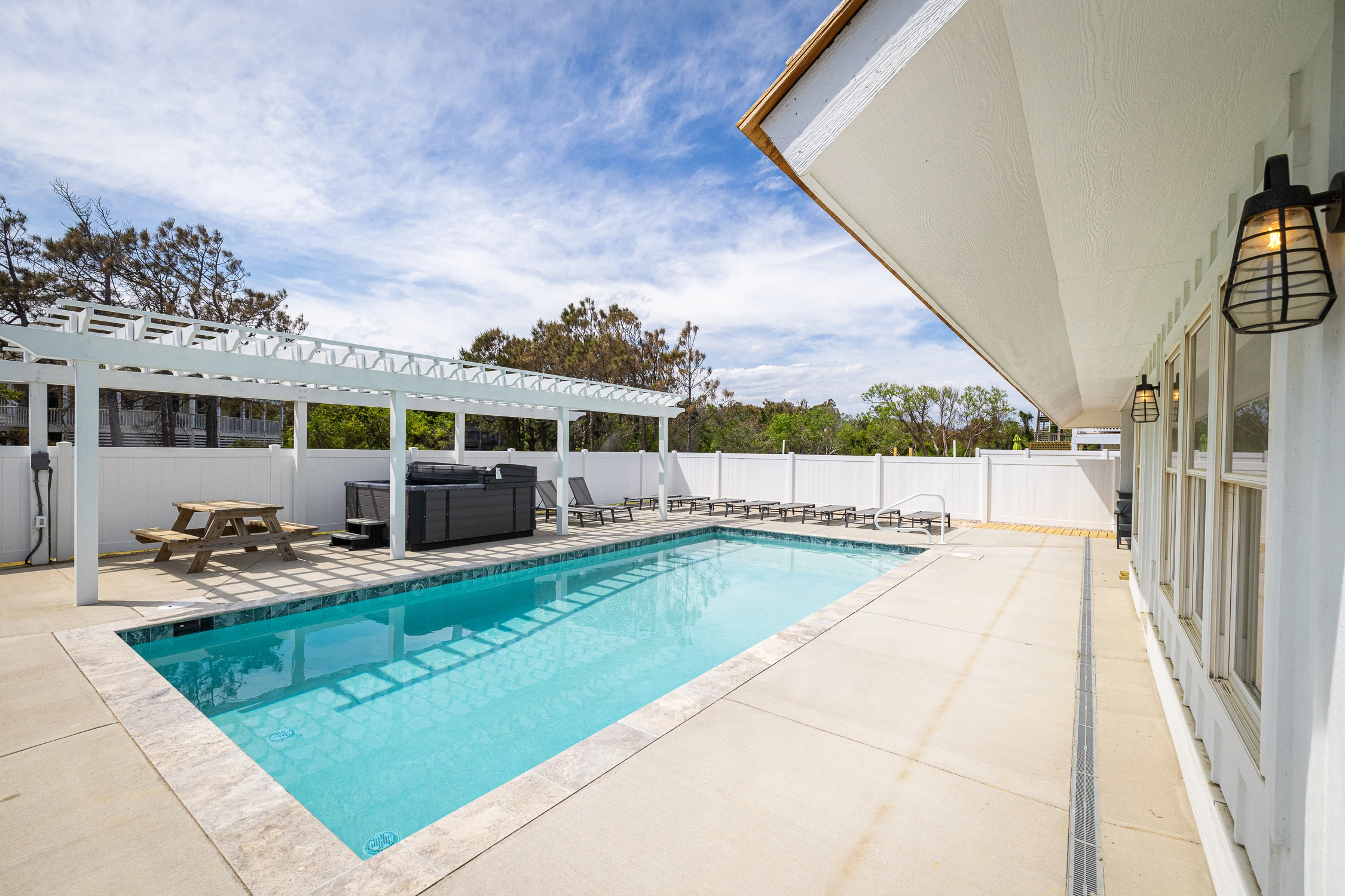 Step outside to your own private resort-style space. The backyard oasis features a sparkling private pool for lounging and a bubbling hot tub for soaking away your cares.
