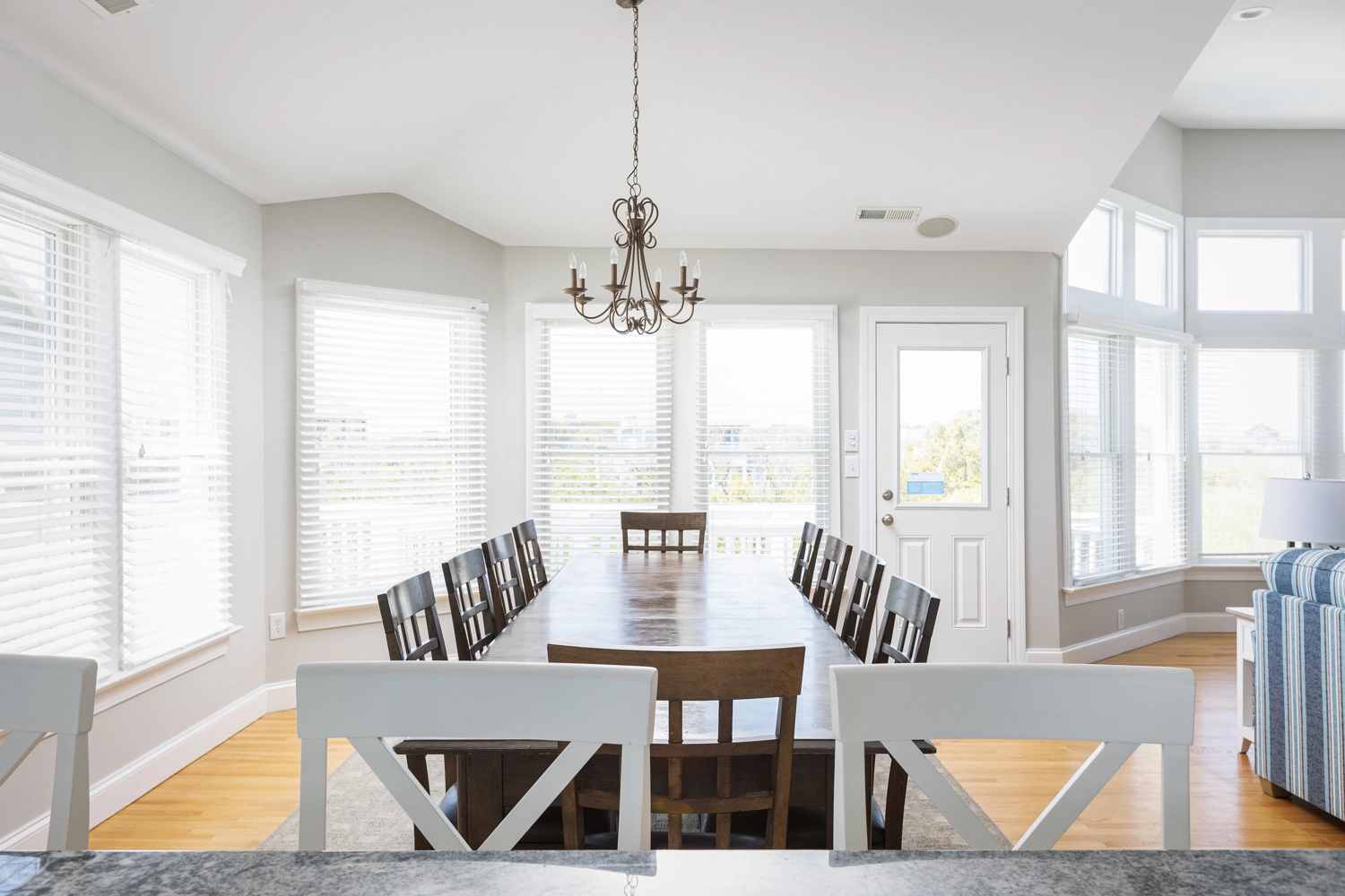 "First the things we really liked for family of 24!!! Lots of space for different groups to relax and have fun without getting in each other’s way! Pool and hot tub were very nice and we loved using them! There were adequate linens and towels. Blankets could be cleaned/replaced due to age, but they were okay. Exterior needs a paint job, but understand the harsh environment, so it was okay also. Where we had issue was the equipment in kitchen. Somethings there were numerous quantities, but not enough kitchen linens or measuring spoons/cups. We cook in, so we had a great need to use. Be prepared for a hike to get to the public access for the beach. It was fine for me....but difficult for older and those with babies...who had to haul a lot of gear. Overall we really enjoyed our stay and would consider this rental again."