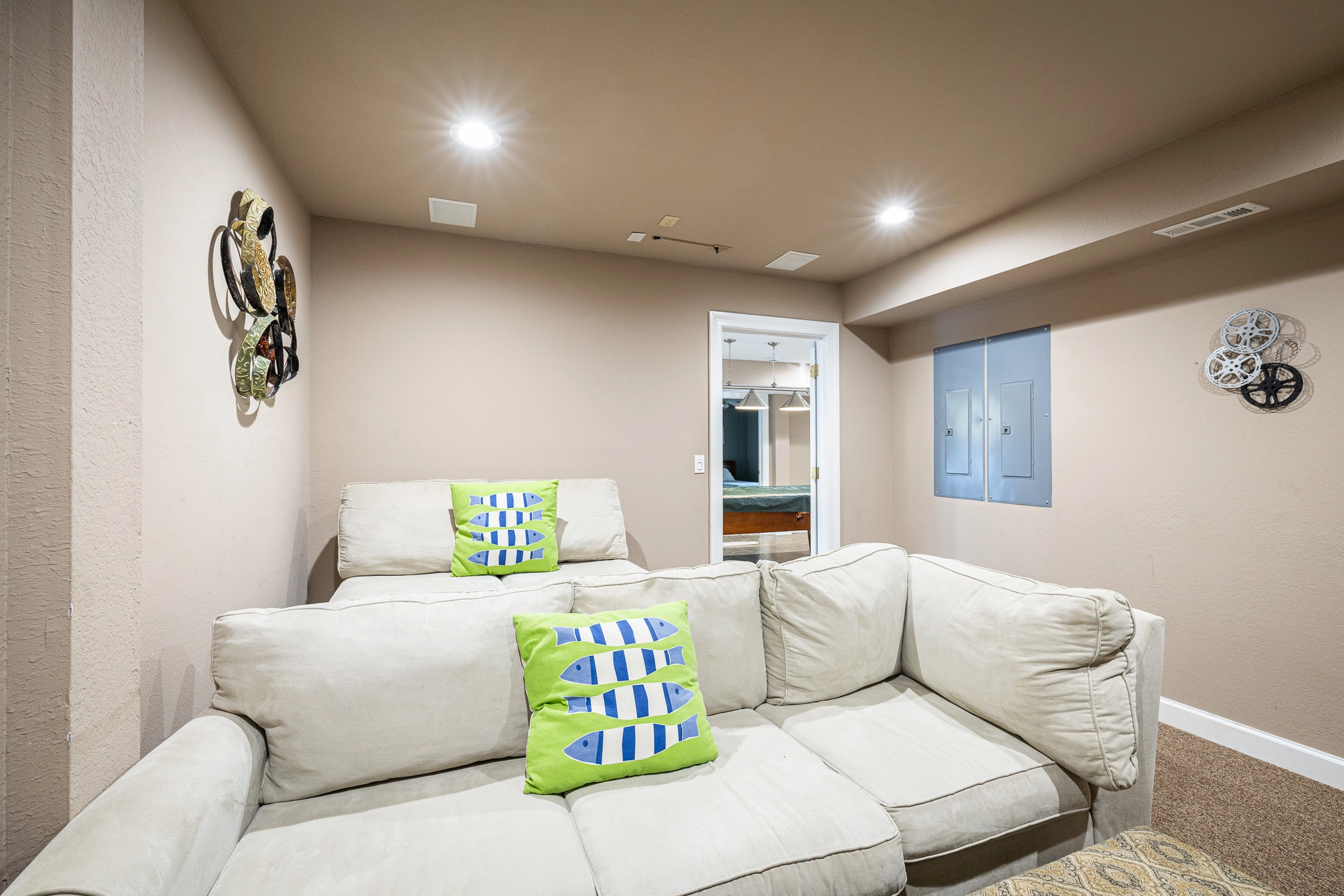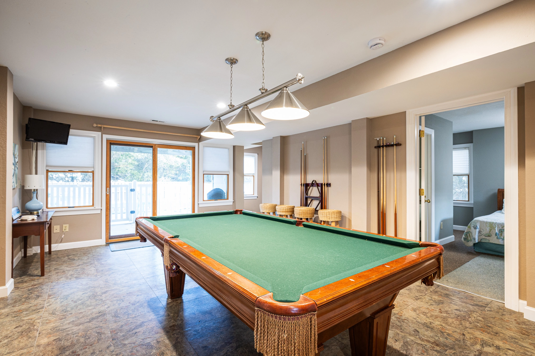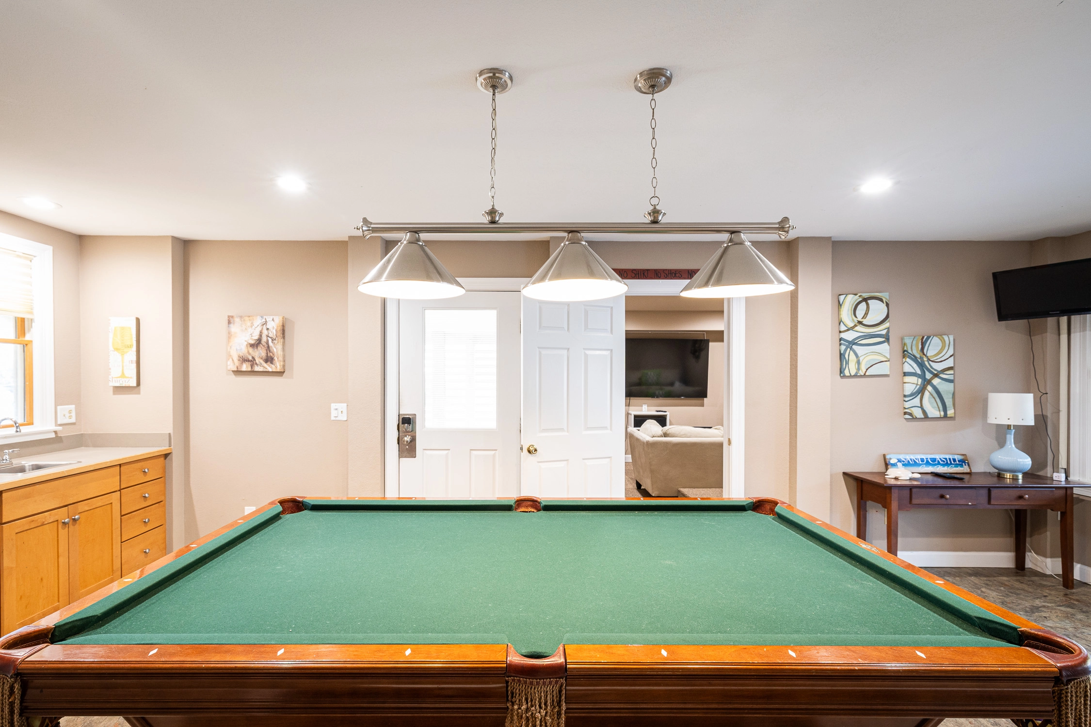 Theater room; rec room with pool table, and wet bar with refrigerator.