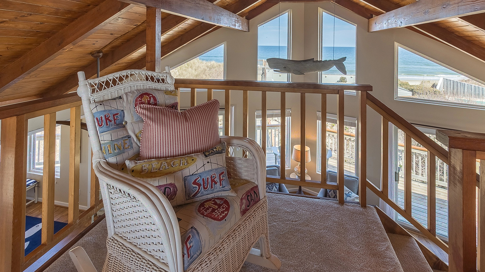 "The tune top deck at offered a full view of the ocean and beach with comfortable chairs"