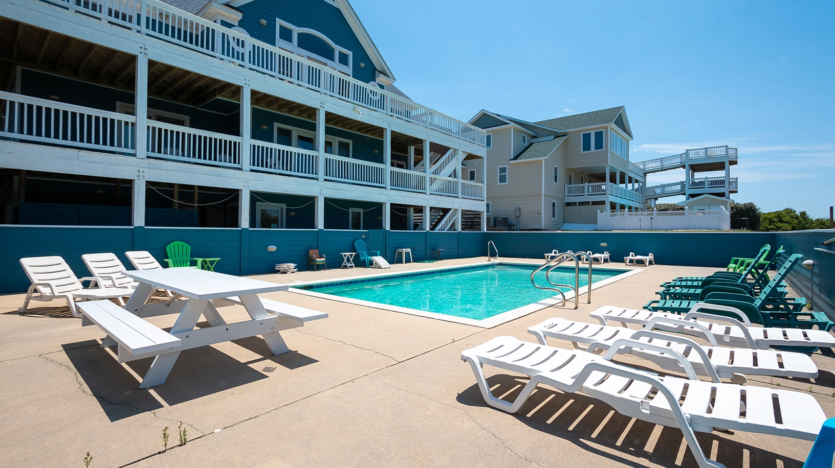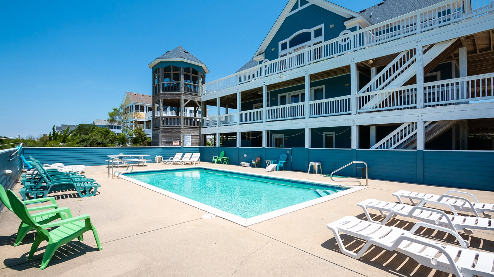 "We have stayed at Changes In Attitude 1 before. We love it's close proximity to the beach; it's nice sized pool; the location of the hot tub and the gazebo room off the top deck that overlooks the ocean; the generously equipped kitchen and large pantry; the wrap around decks; the ability to bring our pets; and so much more. I also love that, in an area of really giant sized homes, I can be semi-oceanfront and so close to beach access, and not have to pay a fortune for a house that is too big for our gathering of 4 to 8 people each year. There are not that many regular sized family homes that are so close in the Corolla area. This is not a small house but it works really well for a group of 12 or less. The big homes just make me feel like I must be friendless - I just don't want that many people on my vacation. This is a really nice home to go to each year and we have reserved again."