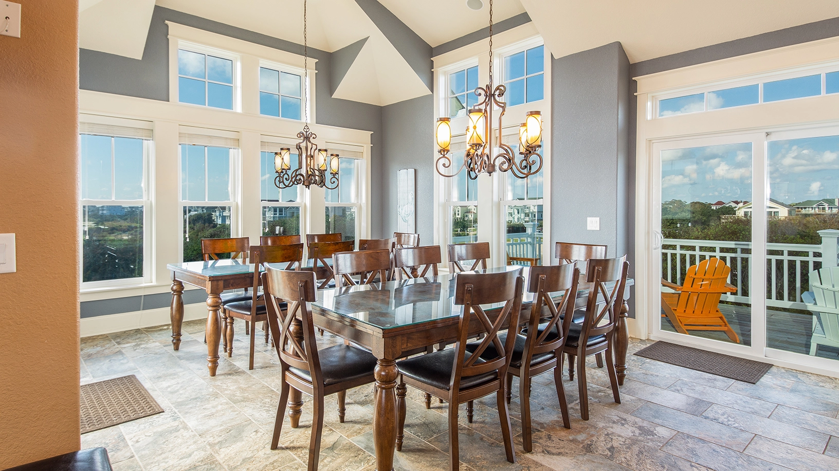 "Chateau de Soleil is beautiful, but is beginning to show its age. Some of the furniture is looking a bit worn. There should be more than two thin pillows on a king size bed. Of note, the home was not as clean as we have come to expect from Twiddy homes (which we have rented for the last 25 years). I understand that there is a tight labor market right now, but when one spends over $15,000 for a high-end home, one expects that it will be thoroughly clean."