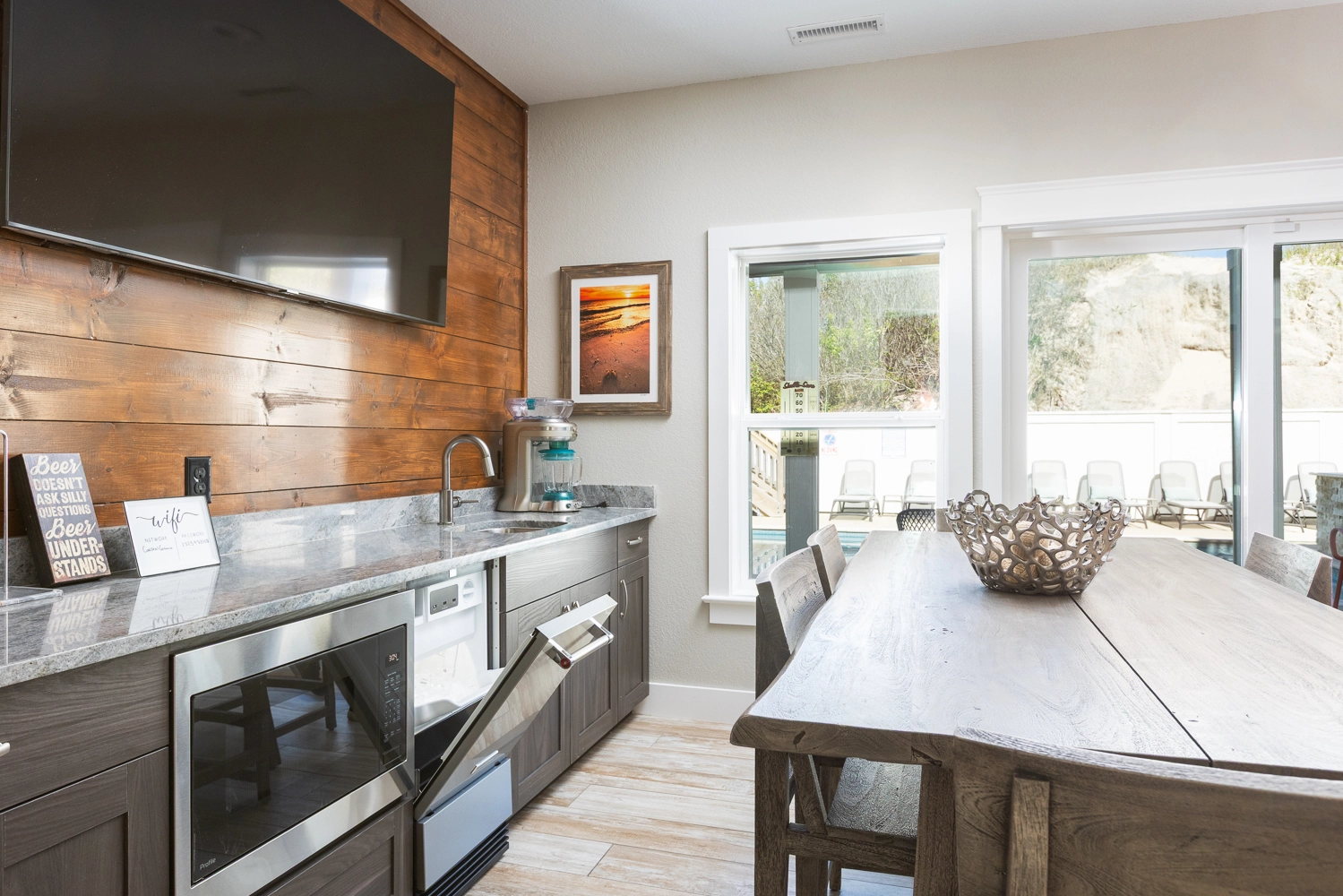 "We loved the deck access to the pool area and beach. The kitchen was extremely well stocked. The whole place was beautifully decorated."