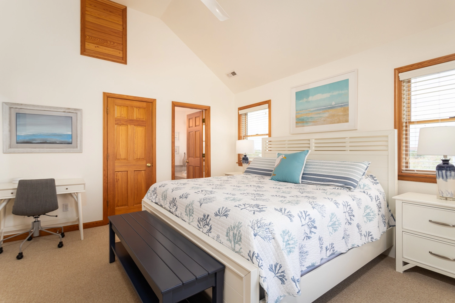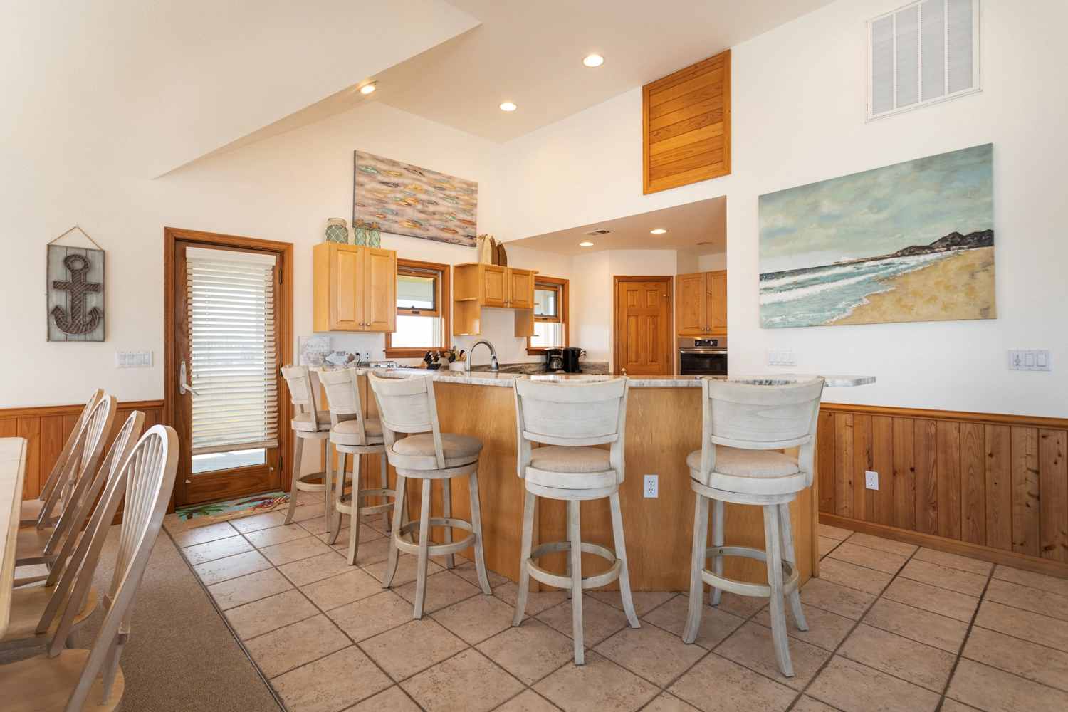 "The house was beautiful and accommodated our group of 17 very nicely. The bedrooms are nicely decorated, pleasant and beds were comfortable. The walk to the beach is short and the beach is nice and long. The kitchen is very well stocked - you really don’t need to bring anything for the kitchen. We cooked dinners every night we were there. We kept drinks and beach snacks in the kitchenette on the first floor."