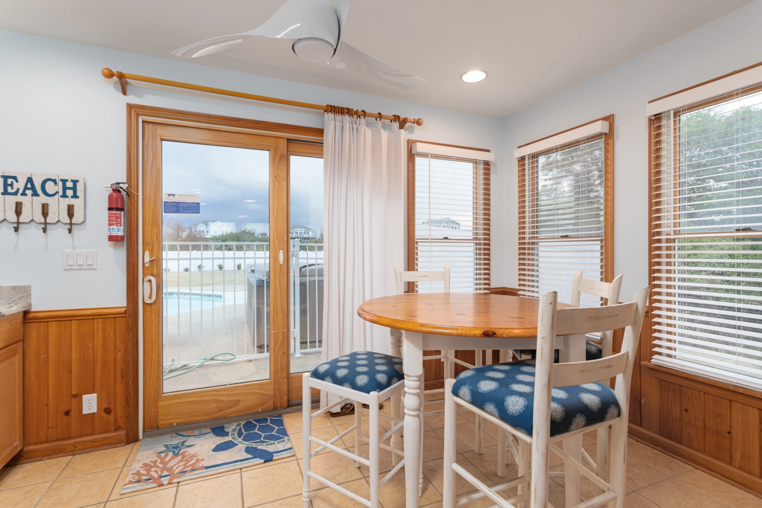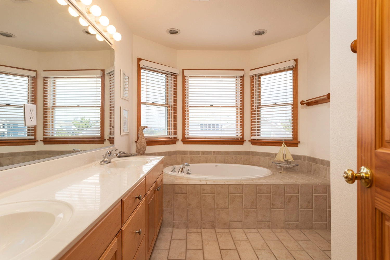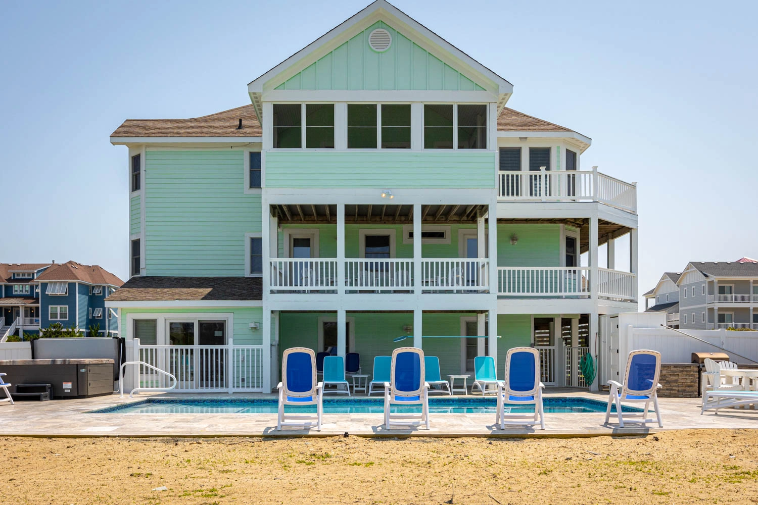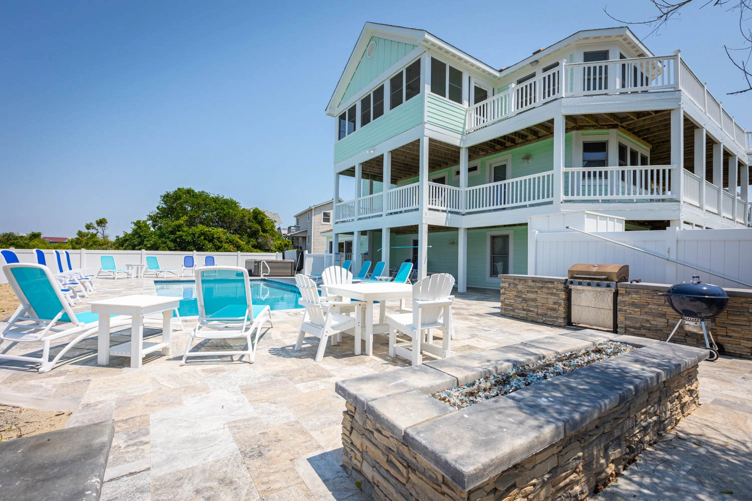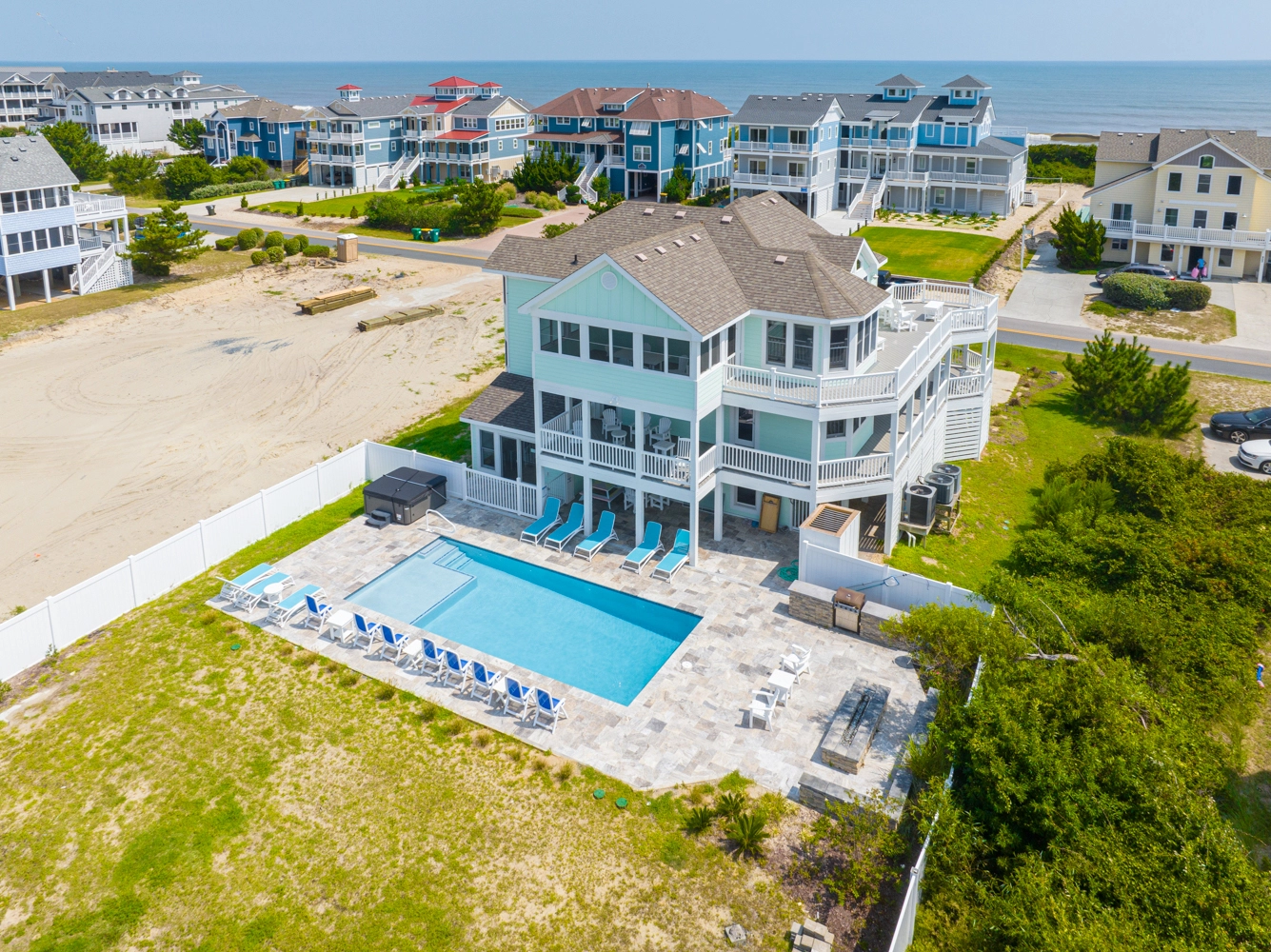"This is a great house in a great location! We had a group of 18 and had plenty of space for all of us in the house. But what really sold it online was the pool area and it did not disappoint in person! With that many people, you need a little breathing room and that pool area delivered. Also we loved the neighborhood feel in Whalehead. We allowed our younger teens to rent bikes to give them a little freedom and we didn’t worry about them going on main roads since the streets connected to the nearest shopping plaza. Lastly, the beach access was a very short walk, so not being directly on the beach wasn’t an issue. My only complaint was that some of the bathrooms were tiny with limited counter space. Also, there was no direct access from the balconies down to the pool area.good for security, not for convenience."