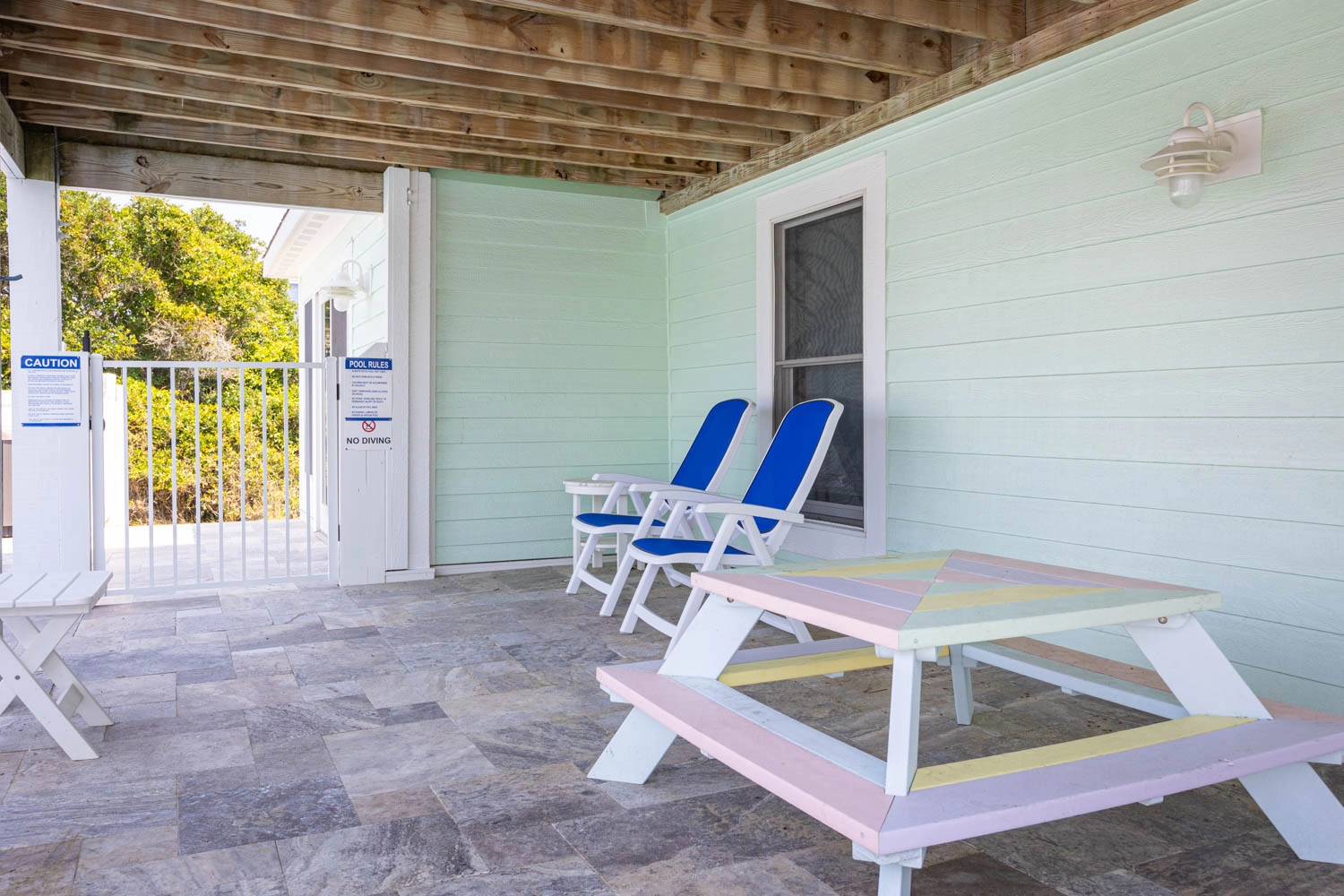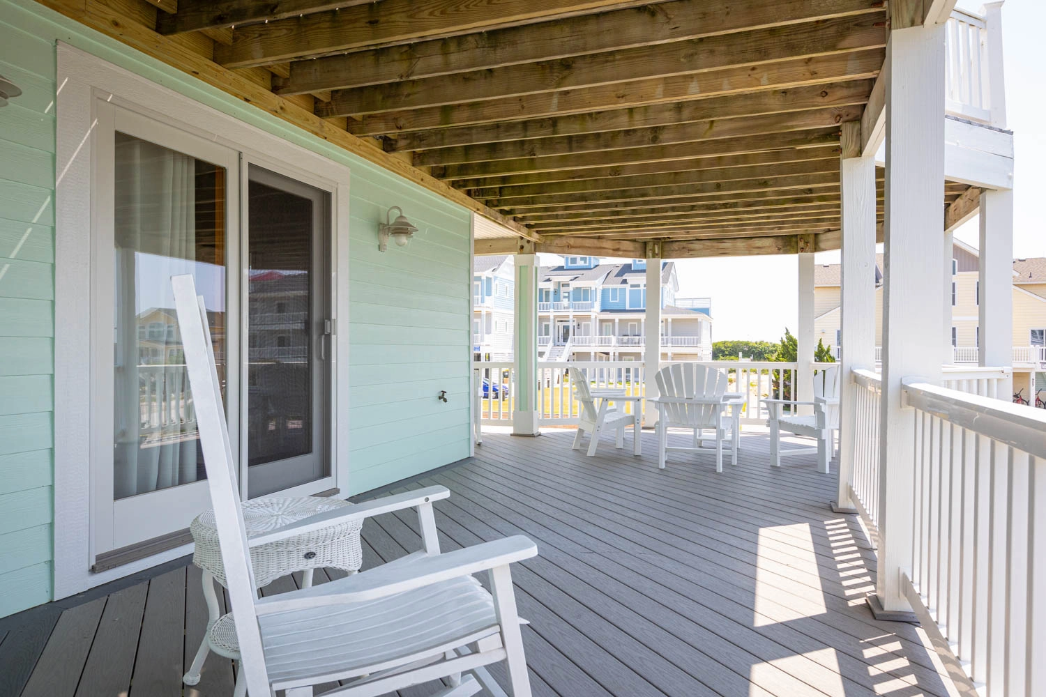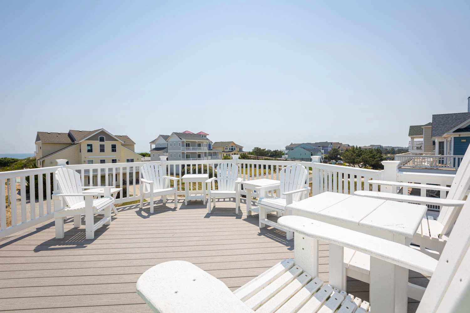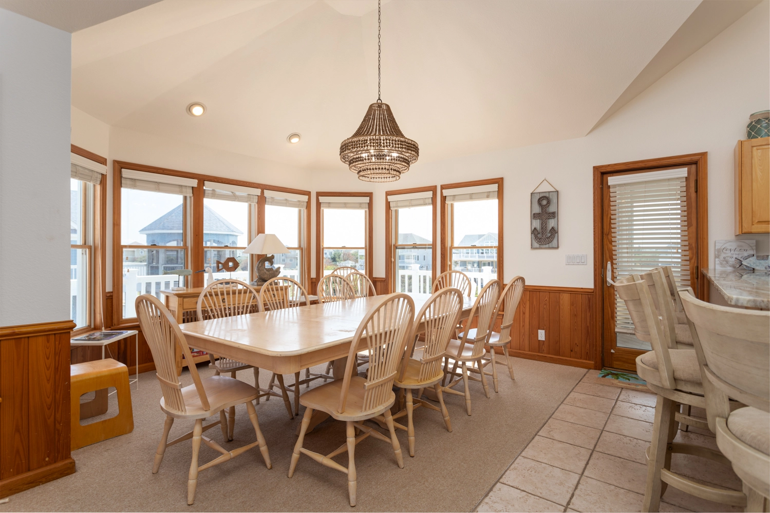 "This is a great house in a great location! We had a group of 18 and had plenty of space for all of us in the house. But what really sold it online was the pool area and it did not disappoint in person! With that many people, you need a little breathing room and that pool area delivered. Also we loved the neighborhood feel in Whalehead. We allowed our younger teens to rent bikes to give them a little freedom and we didn’t worry about them going on main roads since the streets connected to the nearest shopping plaza. Lastly, the beach access was a very short walk, so not being directly on the beach wasn’t an issue. My only complaint was that some of the bathrooms were tiny with limited counter space. Also, there was no direct access from the balconies down to the pool area.good for security, not for convenience."