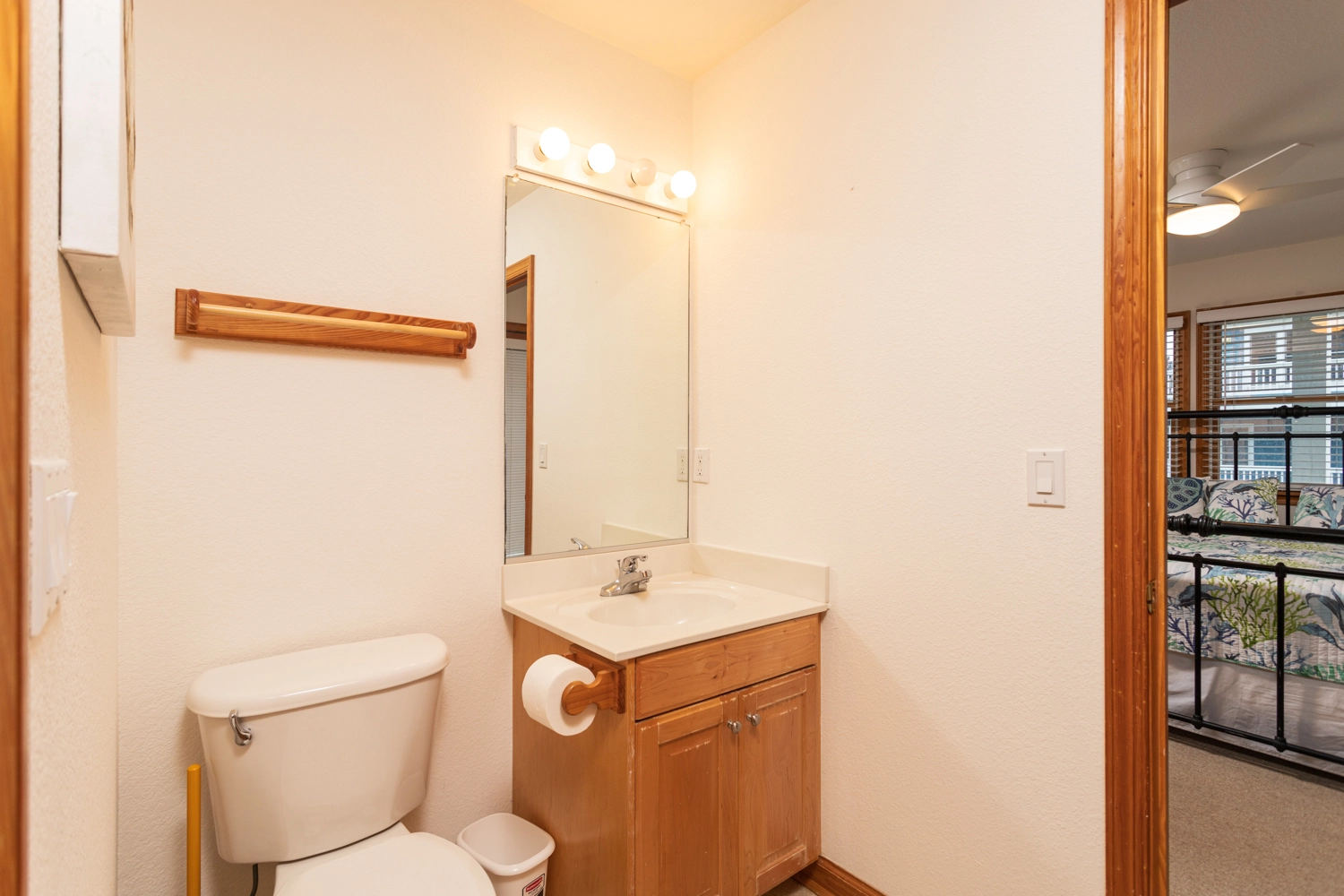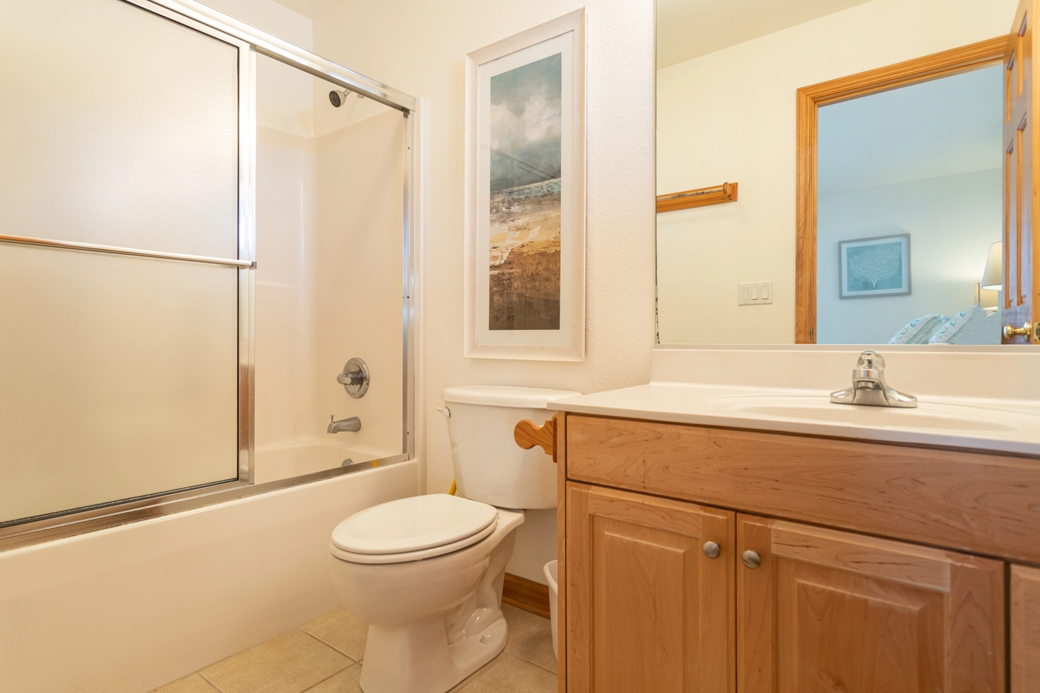 Queen, Shared bath with room 1, Standing shower, Deck access