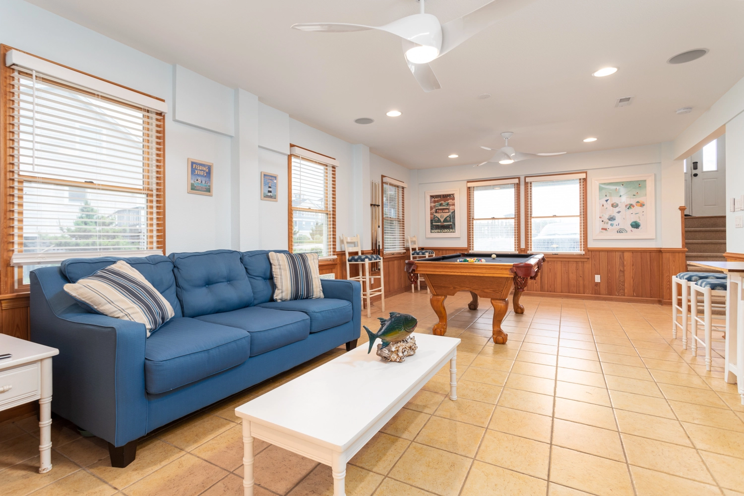 "Living room, game room and bedrooms were all spacious!! Multiple decks around the house were all used. Location was perfect: 3 houses from beach access walkway!!"