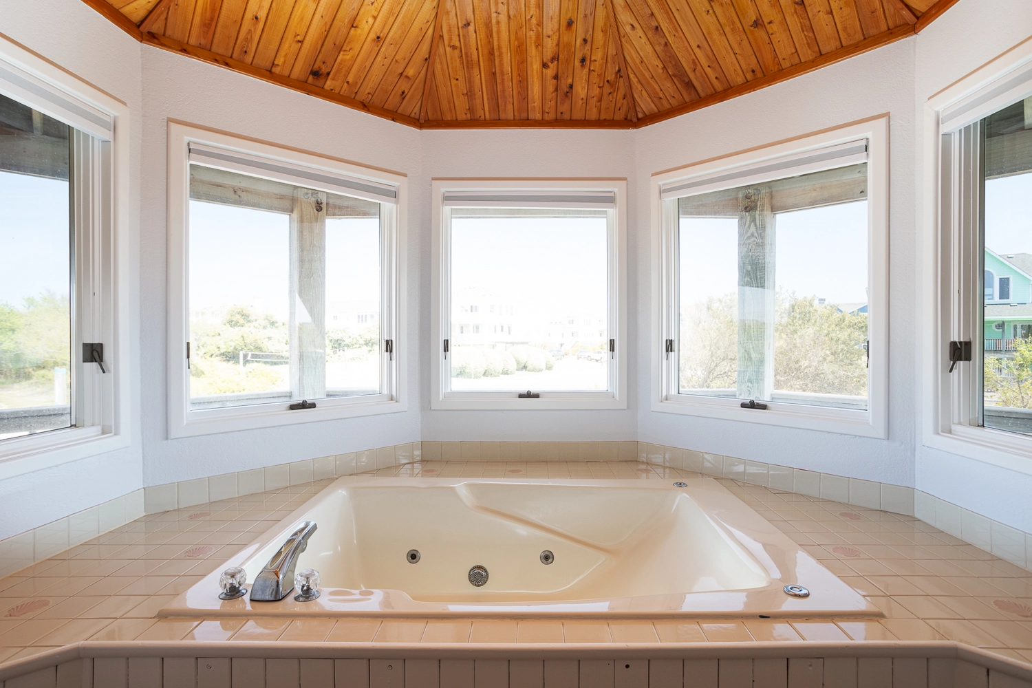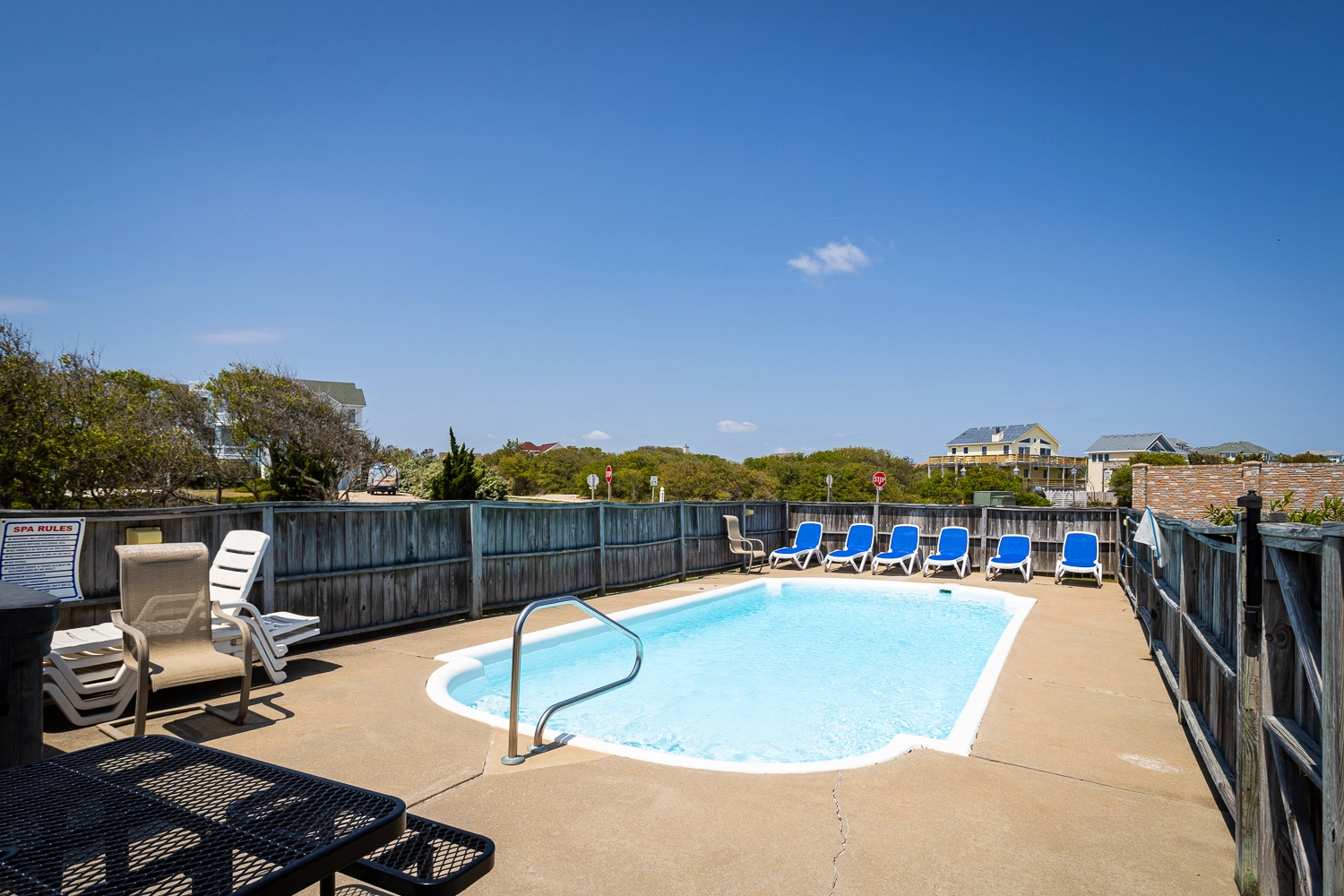 "Upon entering the home, the open, modern living area is both inviting and spacious with plenty of windows. The location to the beach is steps away while the pool area with hot tub is well maintained. Such a splendid house to spend with family and friends; so close to the ocean and the gorgeous area of Corolla."