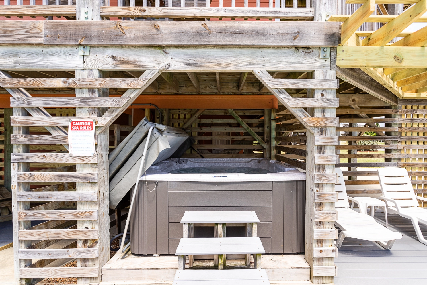 "The great room was very comfortable and we liked the dining room, game table and screened porch. Loved the crow’s nest with its great view. Deck furniture was good quality, plentiful, and comfortable. Toilet in the outdoor shower is a nice idea, the hot tub was easy to operate and big enough for a group."