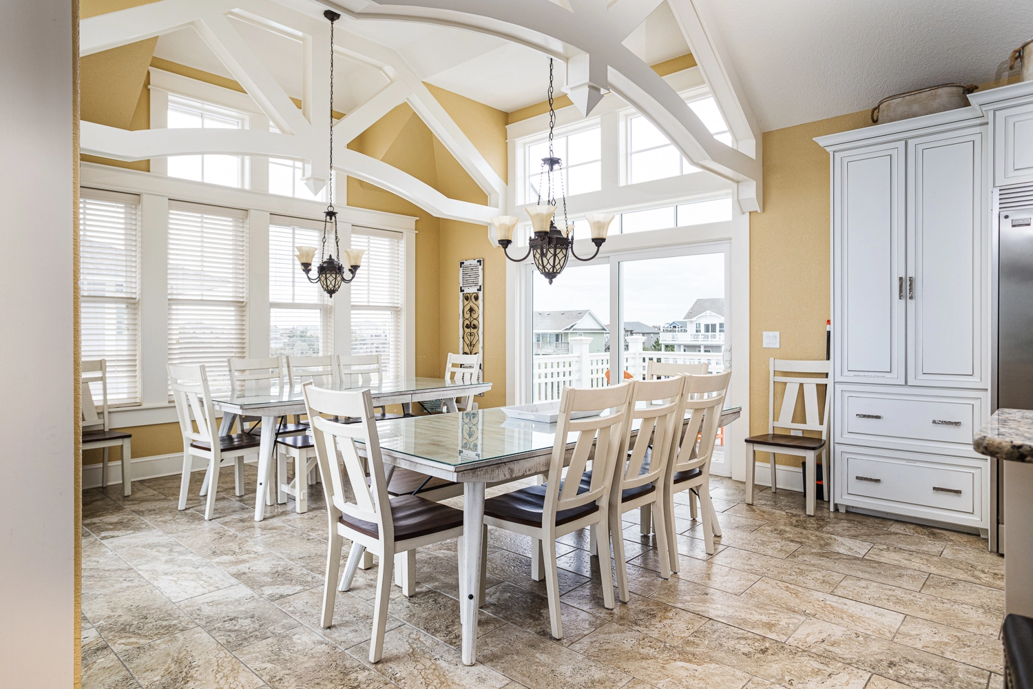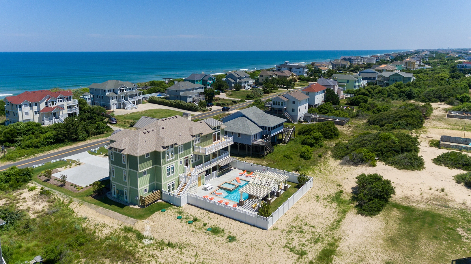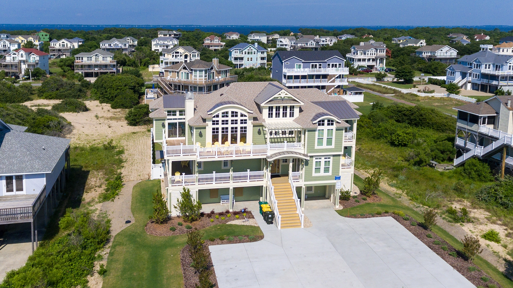 "Creme de la Creme is a big, beautiful home in a perfect location. This was our 10th year in Corolla and we've found the pool is one of the best parts of this build. Loved the very short walk to the beach. Ice machine is a huge plus that you'll always want once you have and miss greatly when you don't. We keep a cooler poolside so that we don't have to go far and keep from tracking water in the house. The deck furniture is cheap and lacking compared to other homes. Kitchen was well labeled, but the items that were supposed to be inside were not there. Sometimes the drawer would be completely empty. Gas burners on range were very finicky – all or nothing."