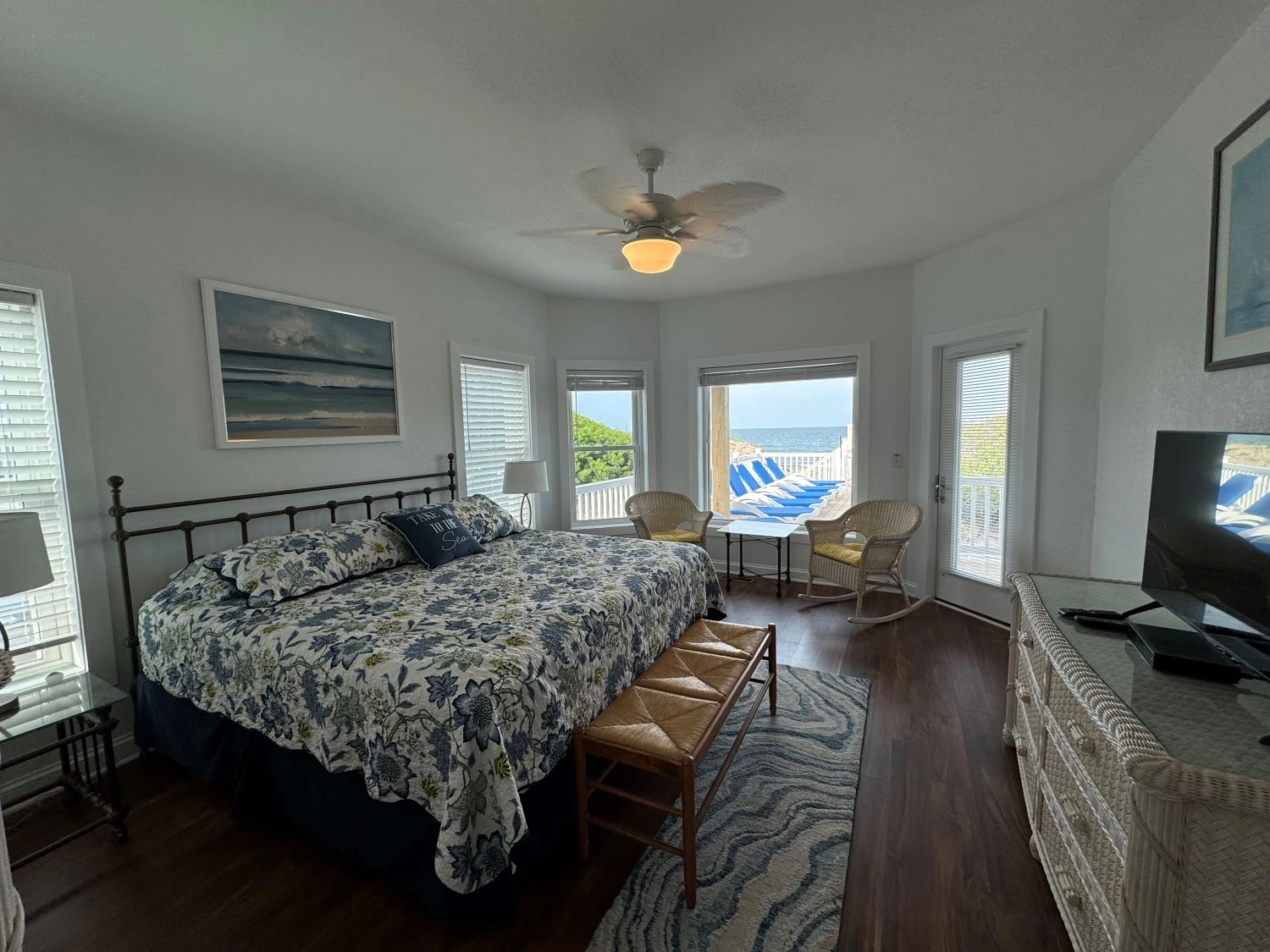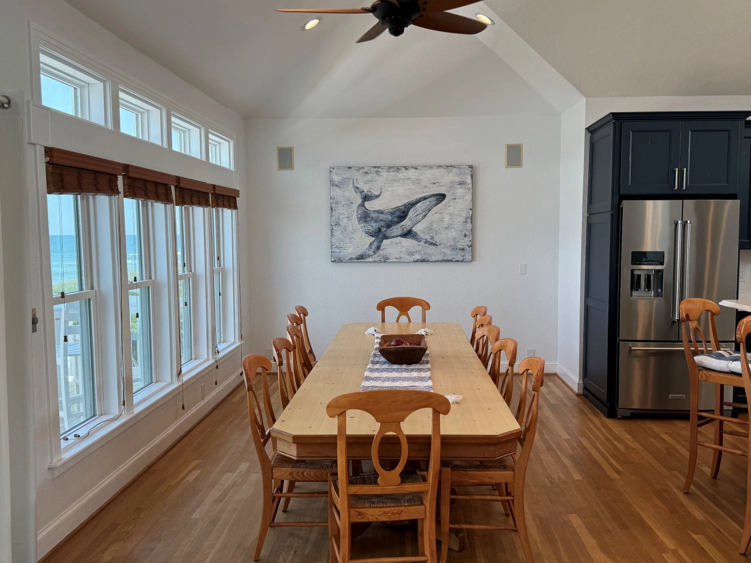 "This is our favorite place to stay. We love the beach access - it is raised so that you can always be pretty sure to be able to use it ( some lower access can be sandblown after storms). We love the platform to sit on for those of us who have mobility issues. We love the theater room, though it has some issues. I love that the Master has a walk-in shower and the surface of the shower is safe - not slippery. The kids loved the Foosball. I love its positioning along the beach, and the view with all the windows. On stormy days, you can sit in one of the swivel armchairs and just watch the ocean waves roll in - it’s wonderful in all weathers. We love the elevator - it is a huge help for us. I love that the table tops are made of material that is impervious to setting down glasses - children accidentally putting rings from their cups, on furniture. The kitchen is very fully stocked. The two dishwashers and lots of silverware for large groups."