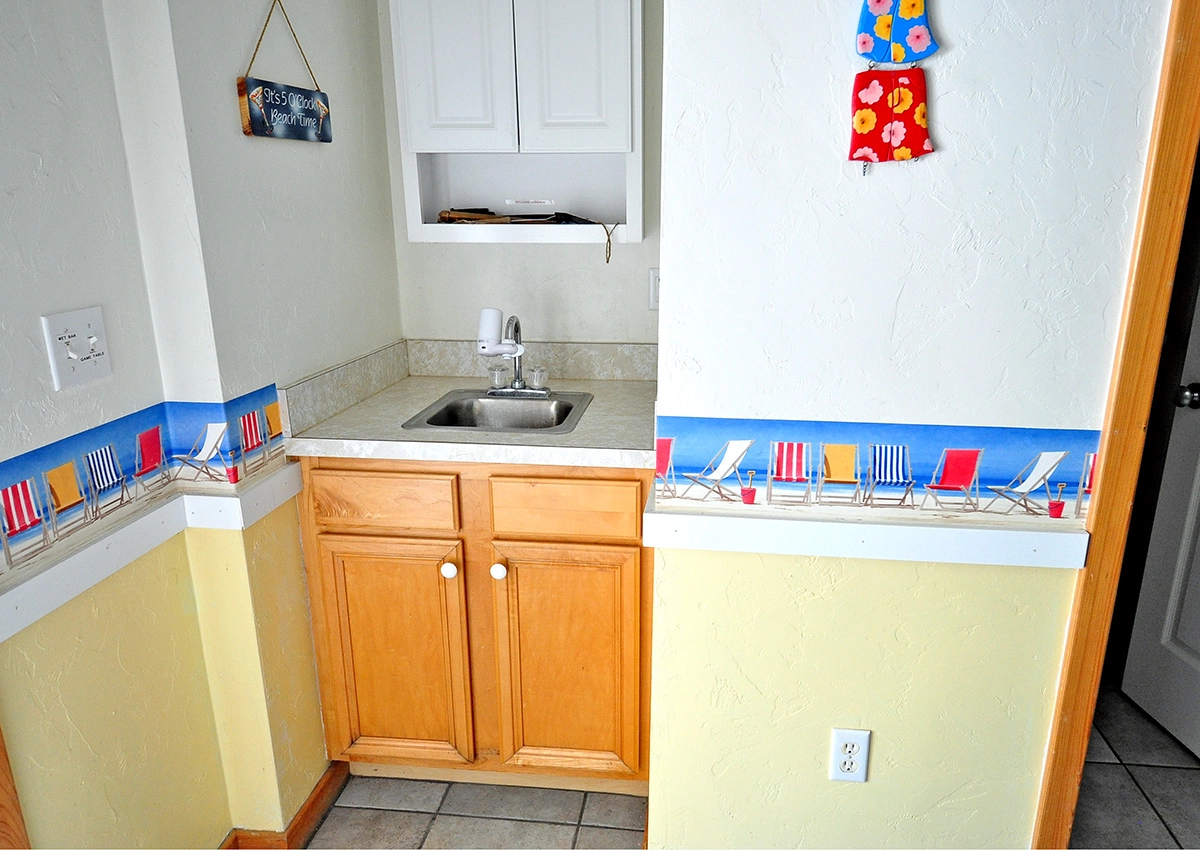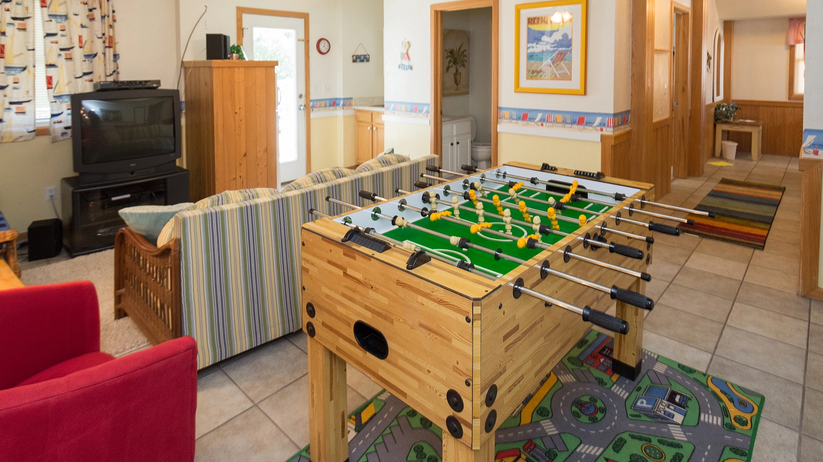 Rec room (QSS) with foosball; wet sink and small refrigerator.
