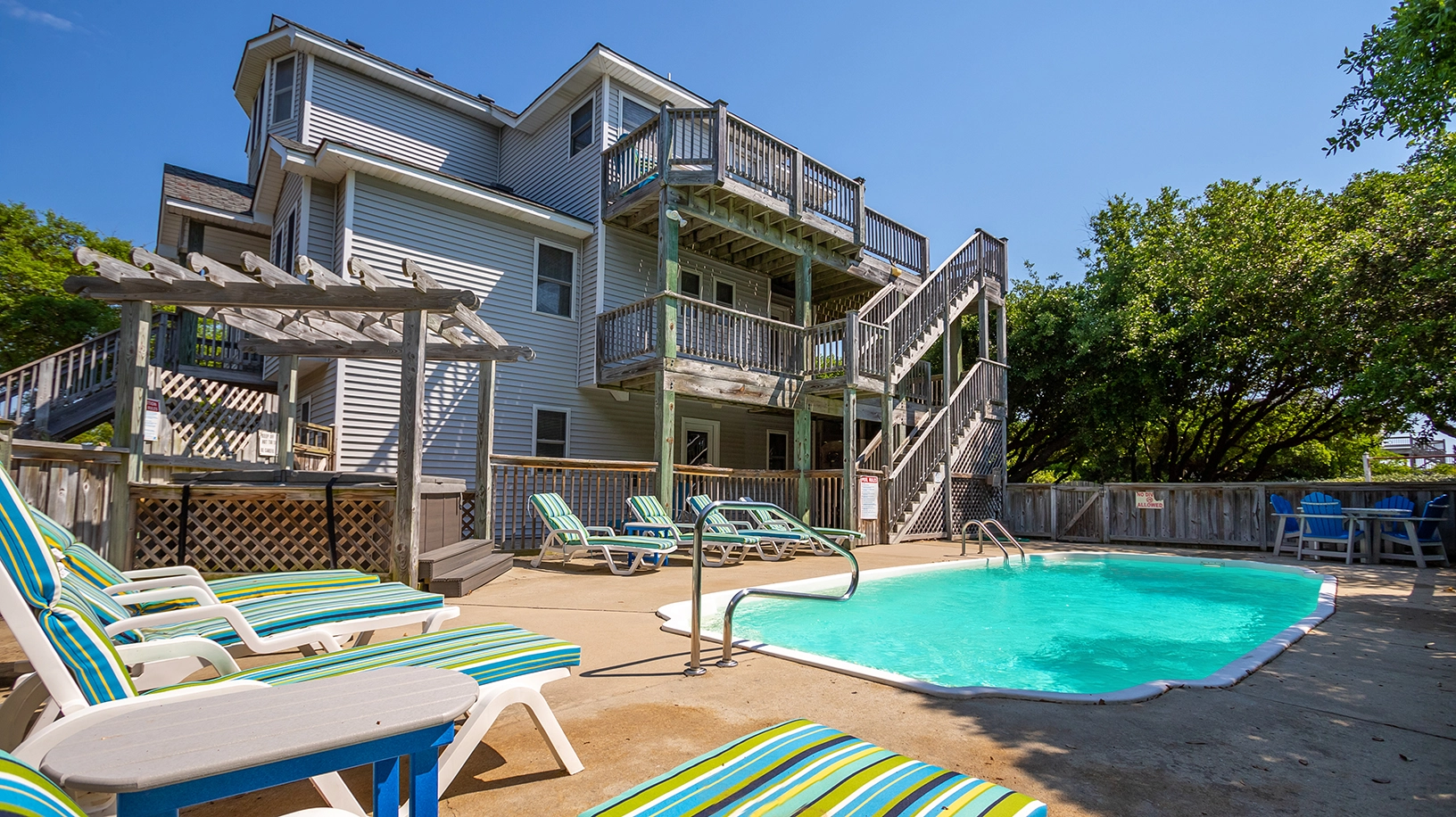 "We enjoyed Curry's Tuck. The house layout was great and we really enjoyed the back yard and pool/hot tub. The kitchen was well stocked and the common living area was great with a lot of seating for our big group of multiple families. We also loved being 2 houses down from the beach access boardwalk. Very close to the store with all the privacy/quietness that Corolla brings."