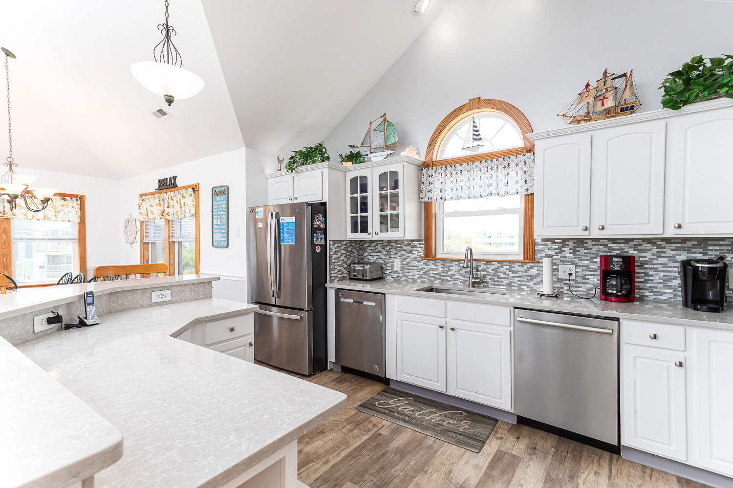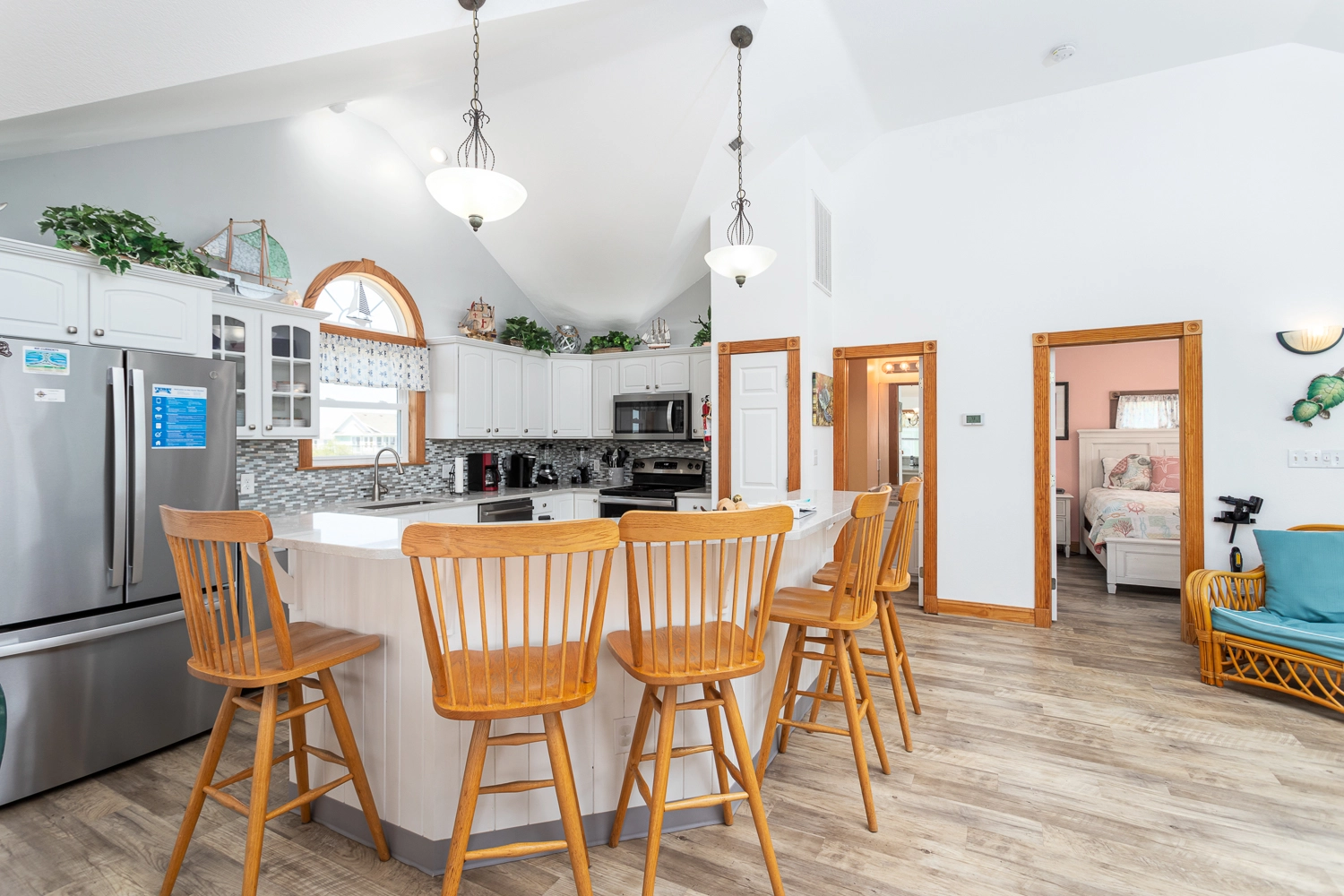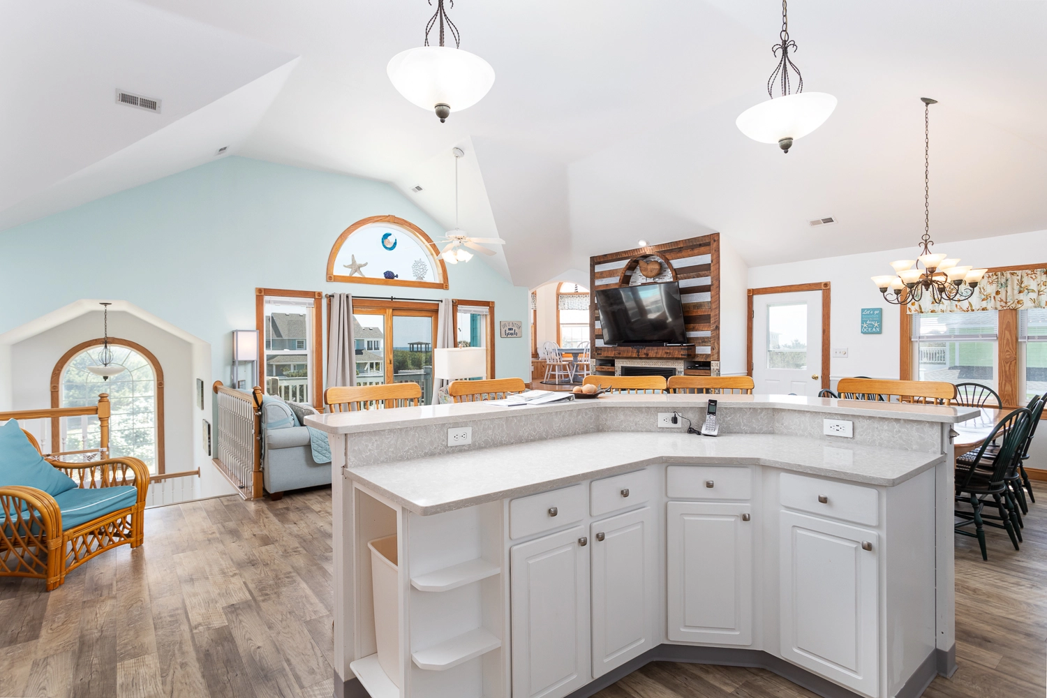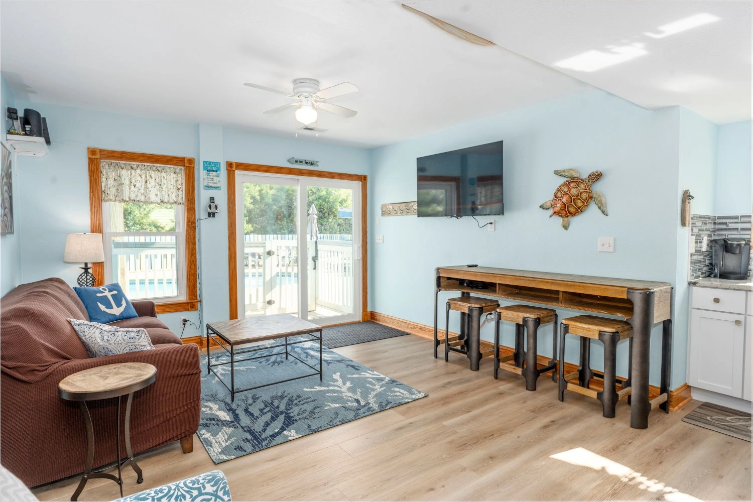 "This home is very welcoming. It has a beachie decor with comfortable furniture and decorations."