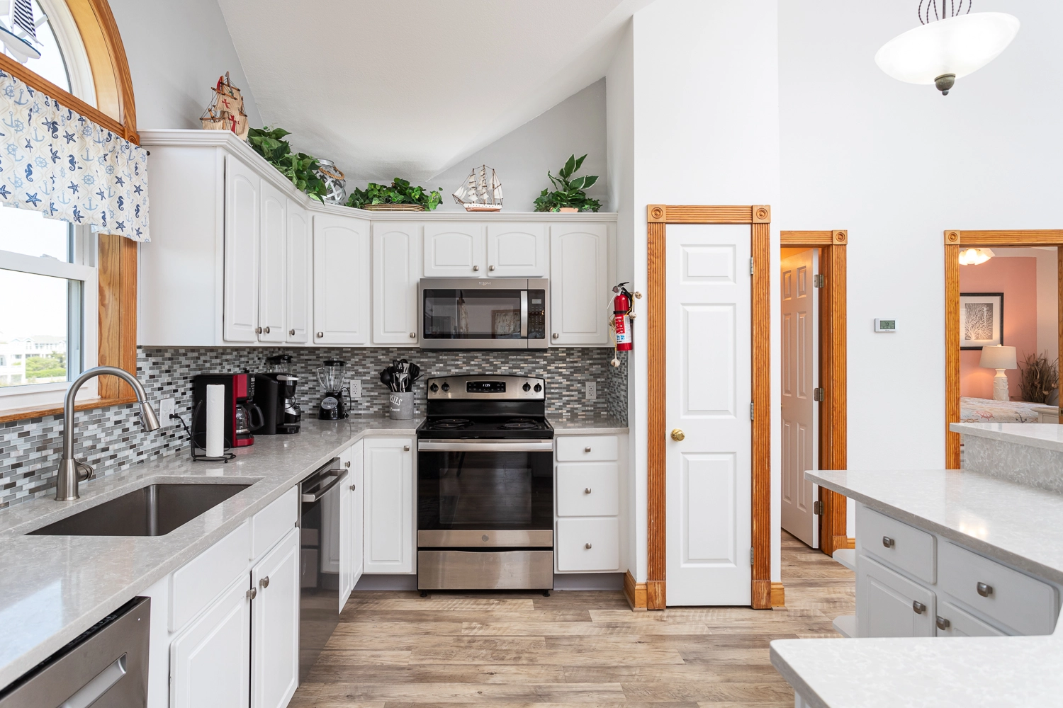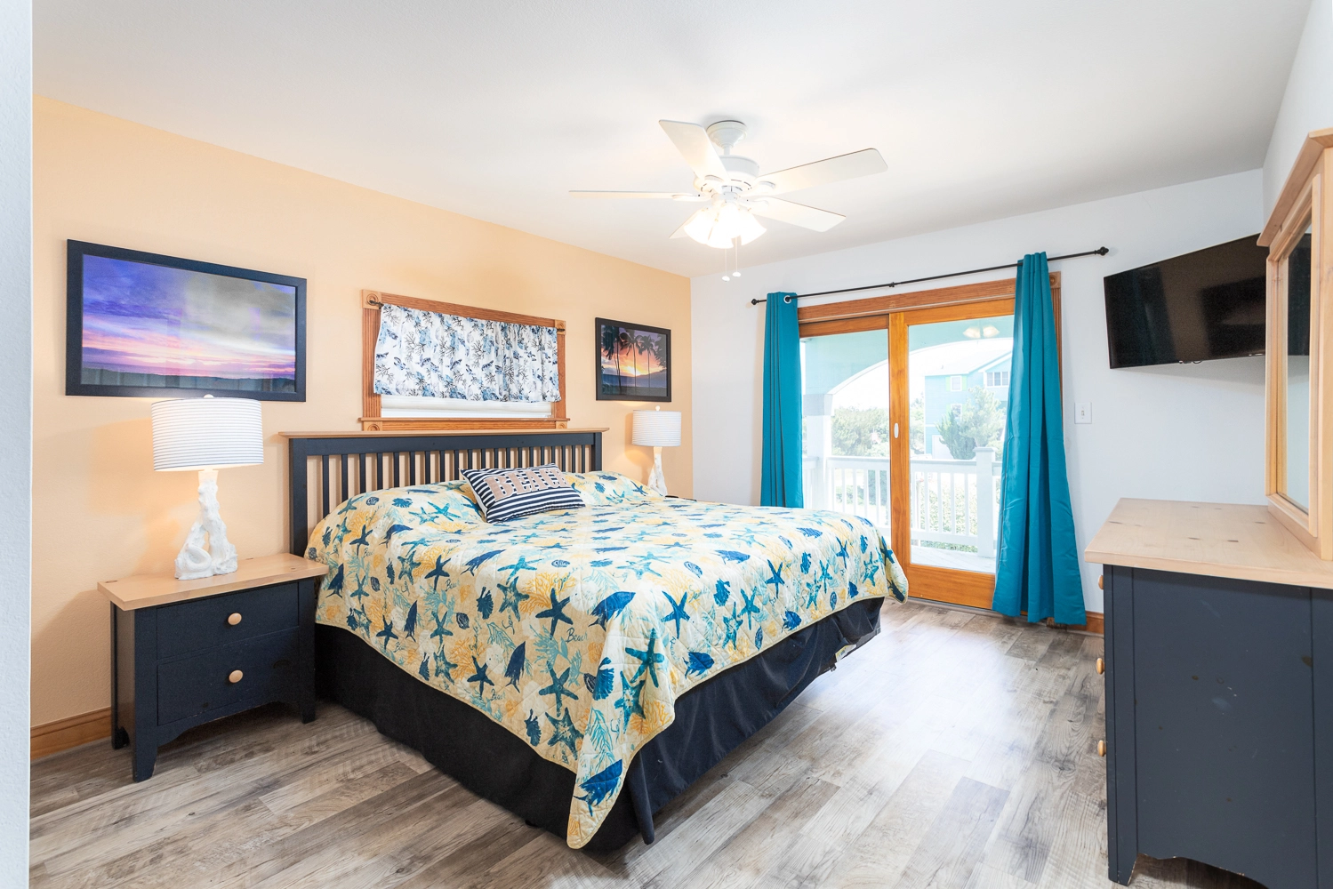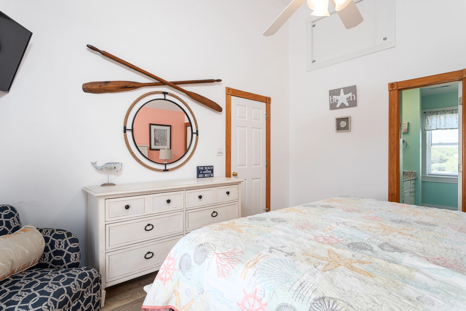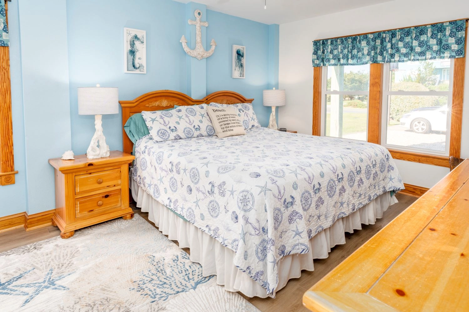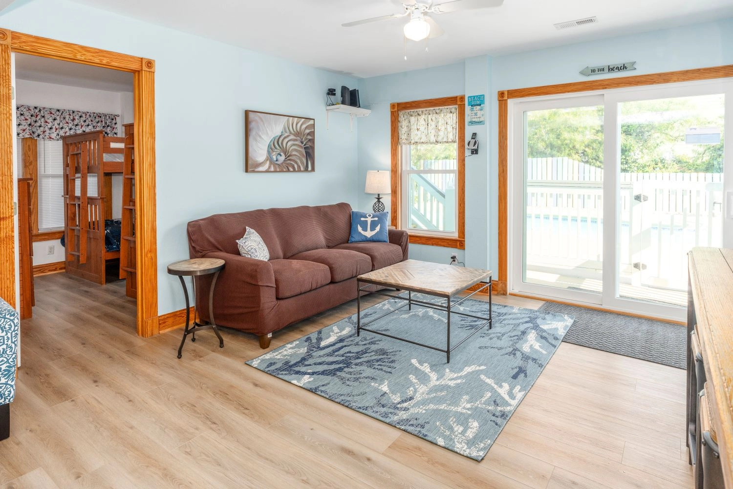 "This home is very welcoming. It has a beachie decor with comfortable furniture and decorations."