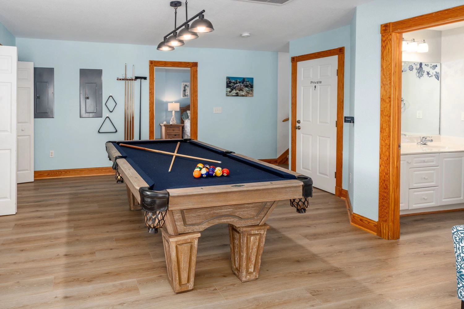 "Lots of space with a playroom, flat screen, and small pool table downstairs. Very well equipped kitchen."