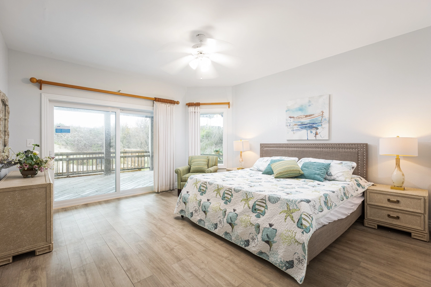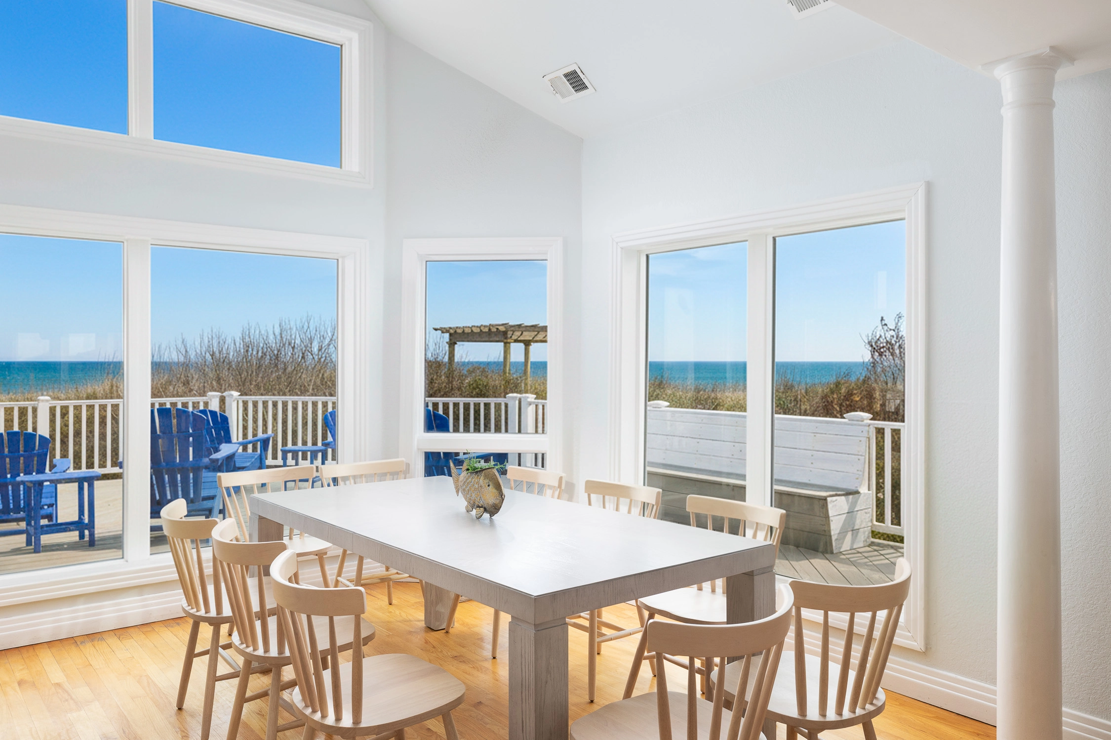 "This is our second year (in a a row) staying at Dreamcatcher. We love the house, the layout, the fact that the beach is right outside the back door, the pool is terrific. The improvements inside are wonderful, love the white kitchen and the blue exterior is gorgeous. There was more than enough space for the 10 of us. Actually 11 if you count our dog, Daisy Mae. The four grandchildren loved it - again. The convenience of being so close to Timbuk Two is super."