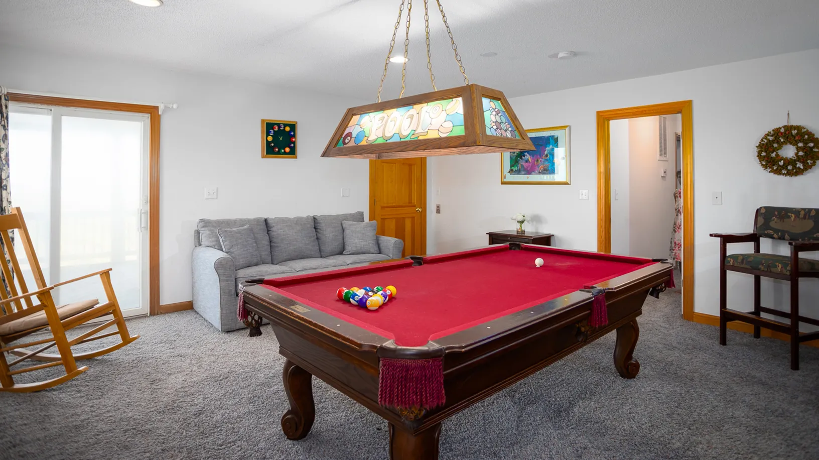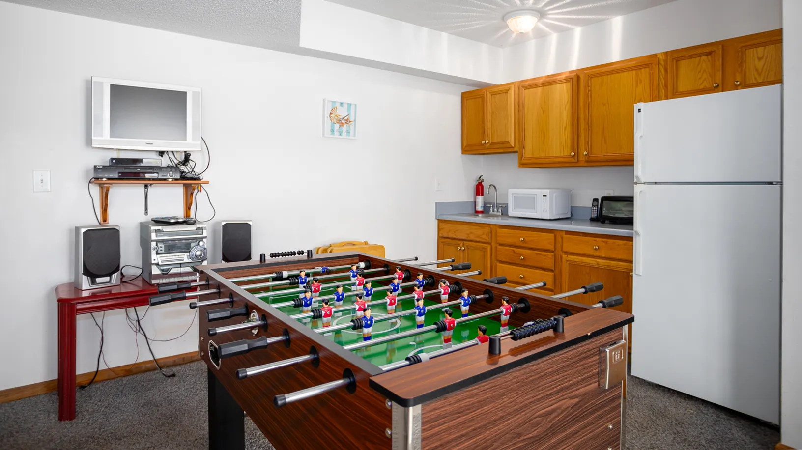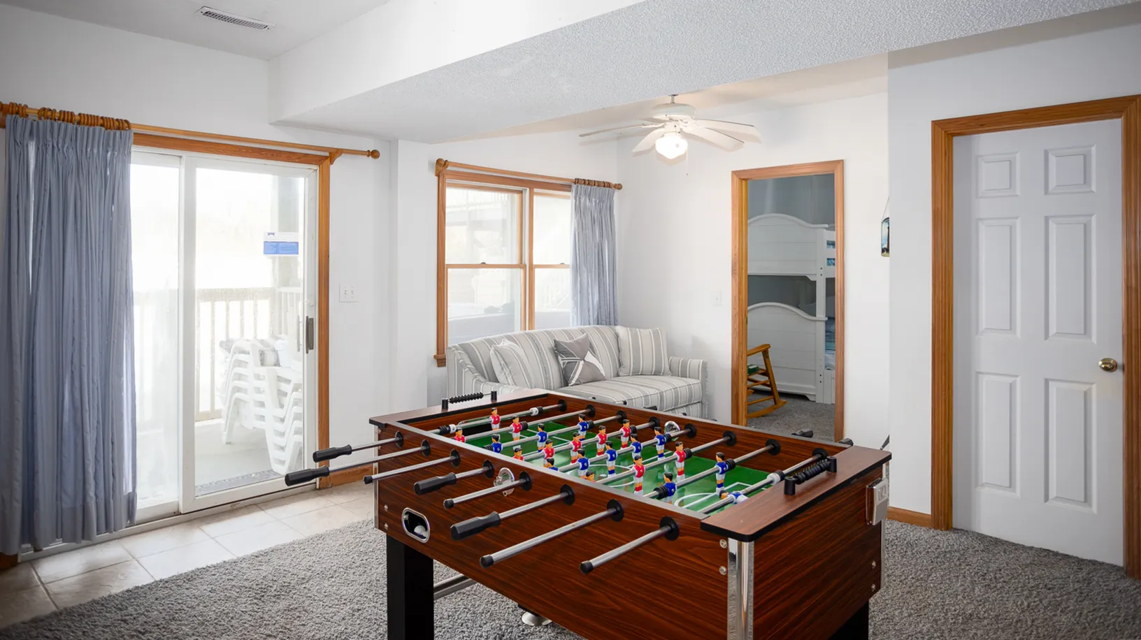Rec room (QSS) with foosball, kitchenette with microwave and full-size refrigerator; pool area with outside half bath (no sink) and outside shower; fish-cleaning sink; outside storage room for guests' use.