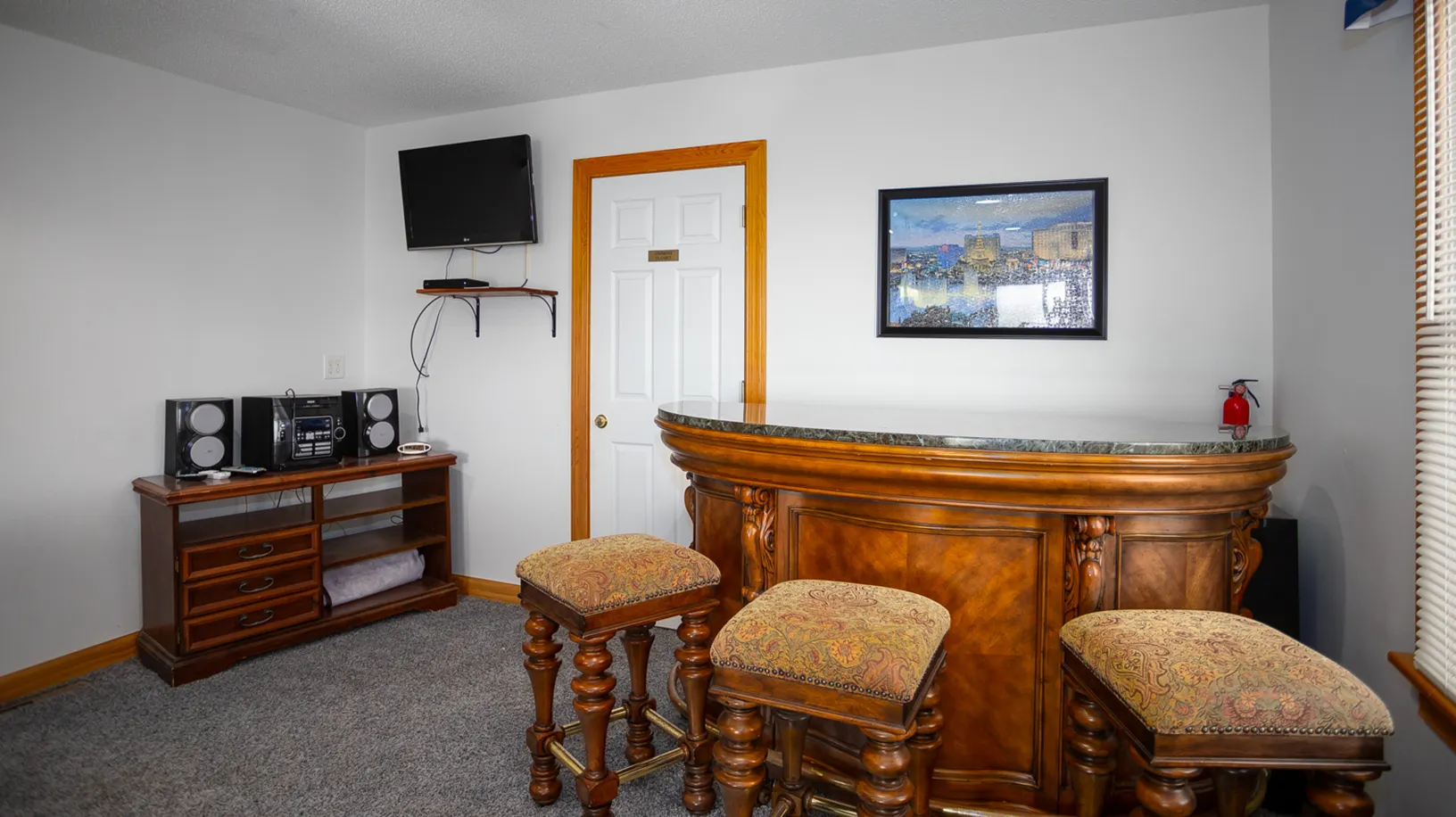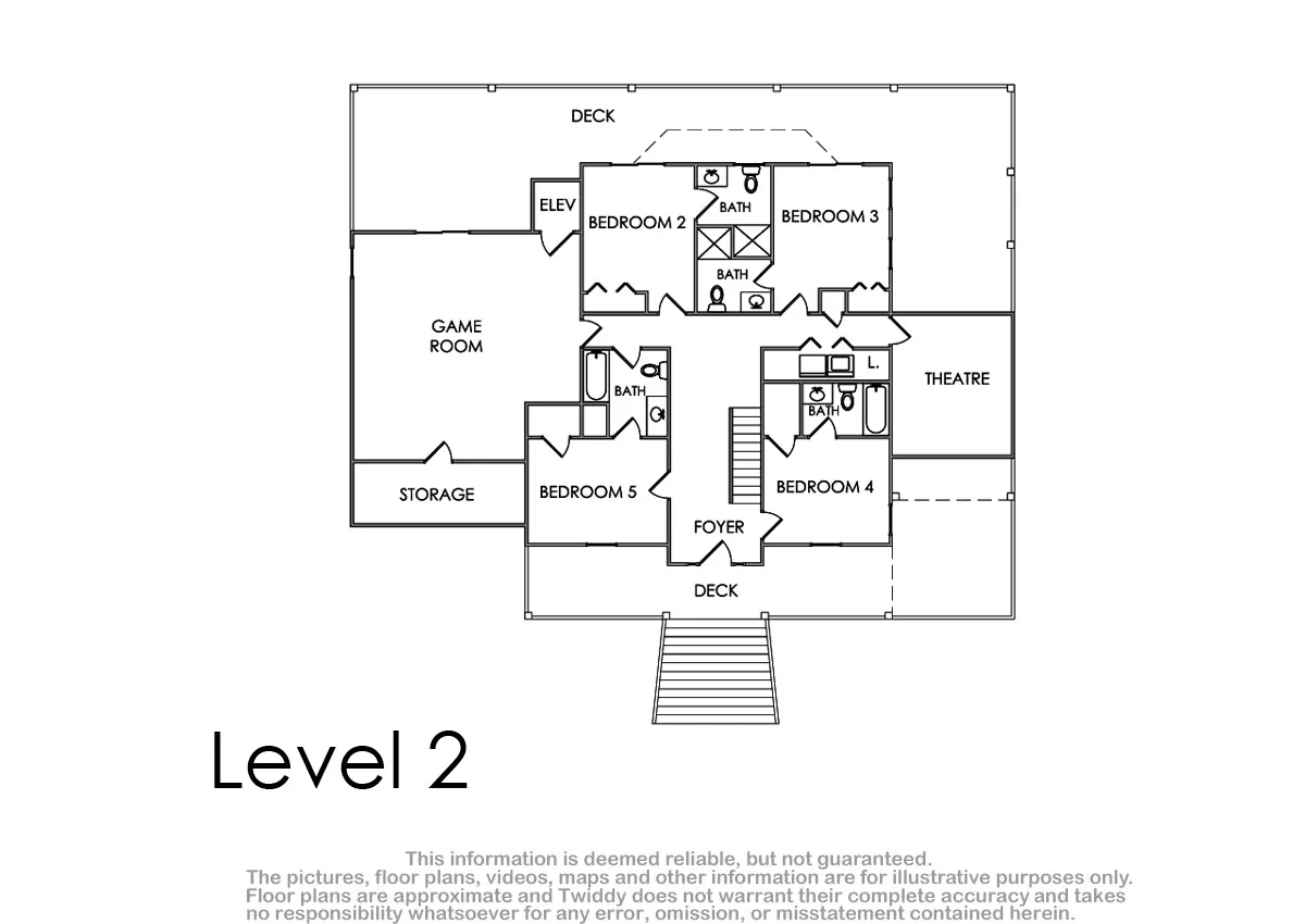 Handicap-friendly bedroom on L2 with shower bar and handicap ramp from deck, ground-level ramp from carport, elevator, two hot tubs.