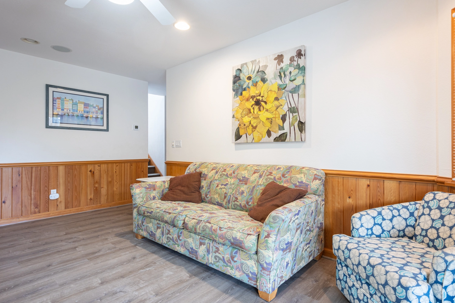 "Driftwood 1 is a perfect size for us, very comfortable furniture and this neighborhood is quiet with beautiful landscaping. The pool and decks make being outside any time of day delightful."