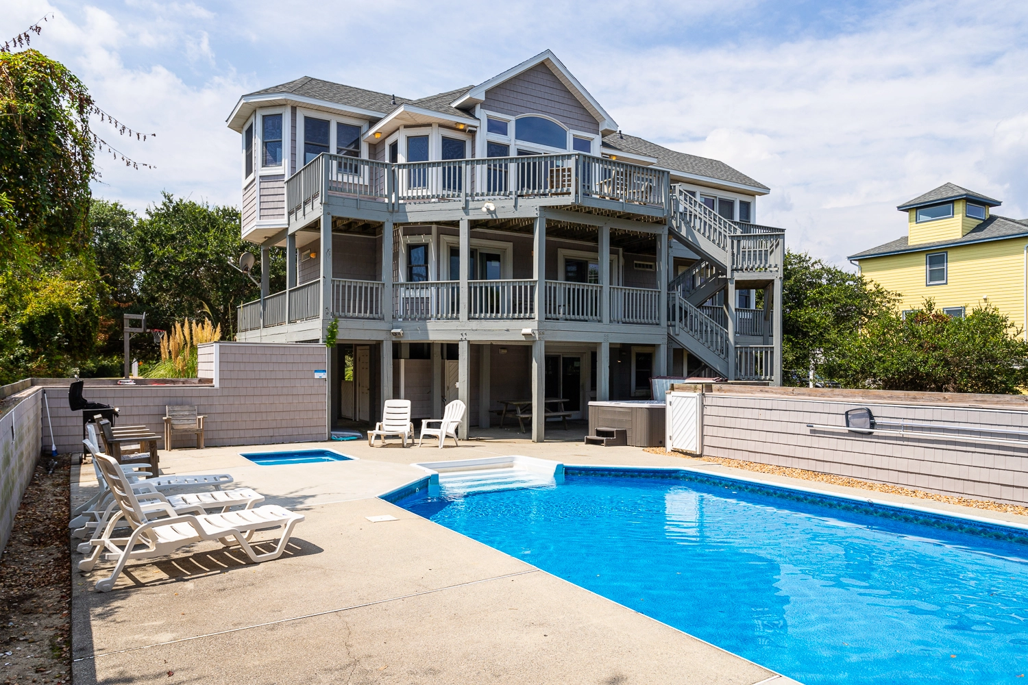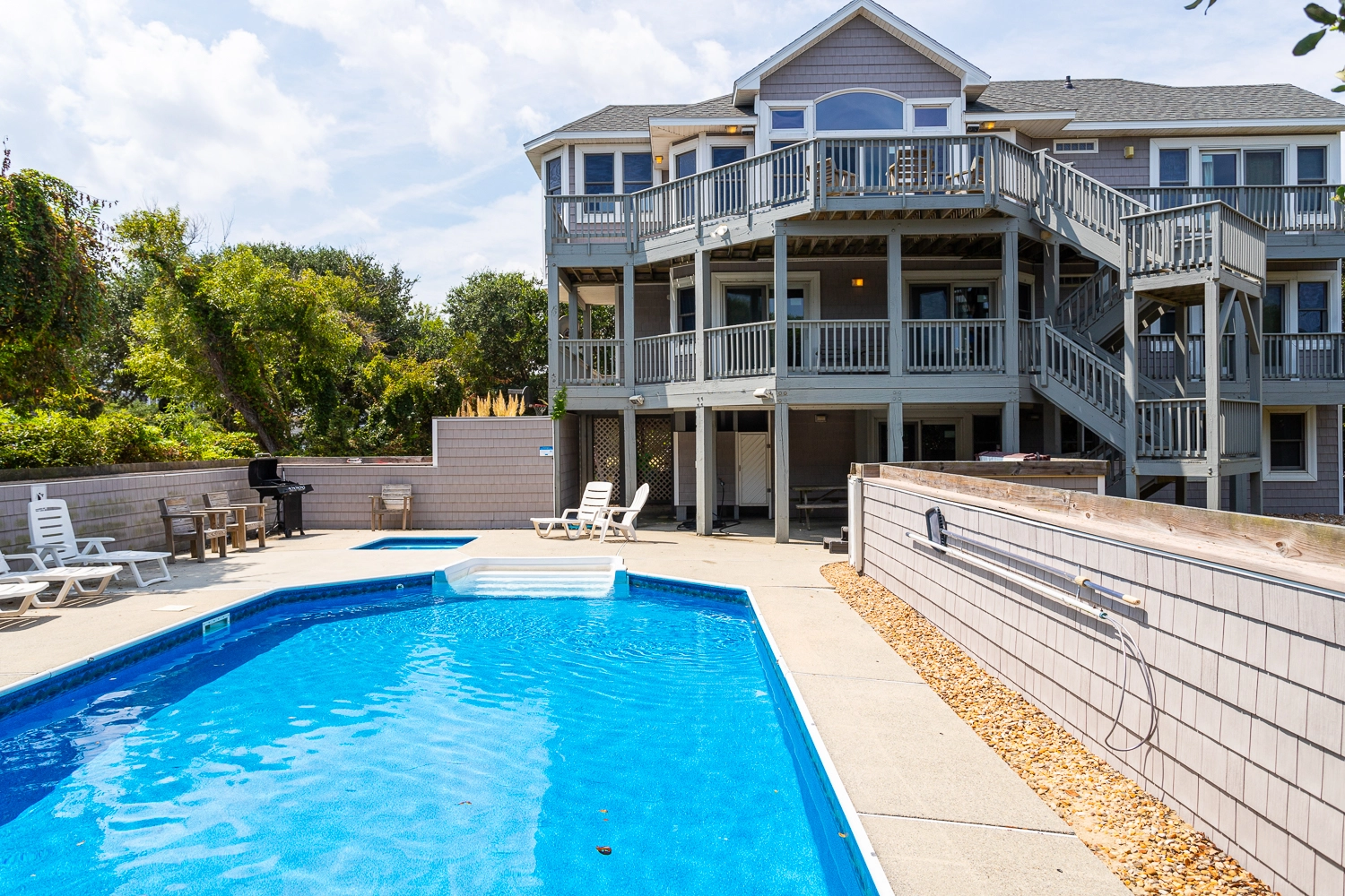 "We loved the spacious home,the beautiful pool and the younger grands loved the kiddie pool. The home sits on a shaded lot with an easy walk to the beach."