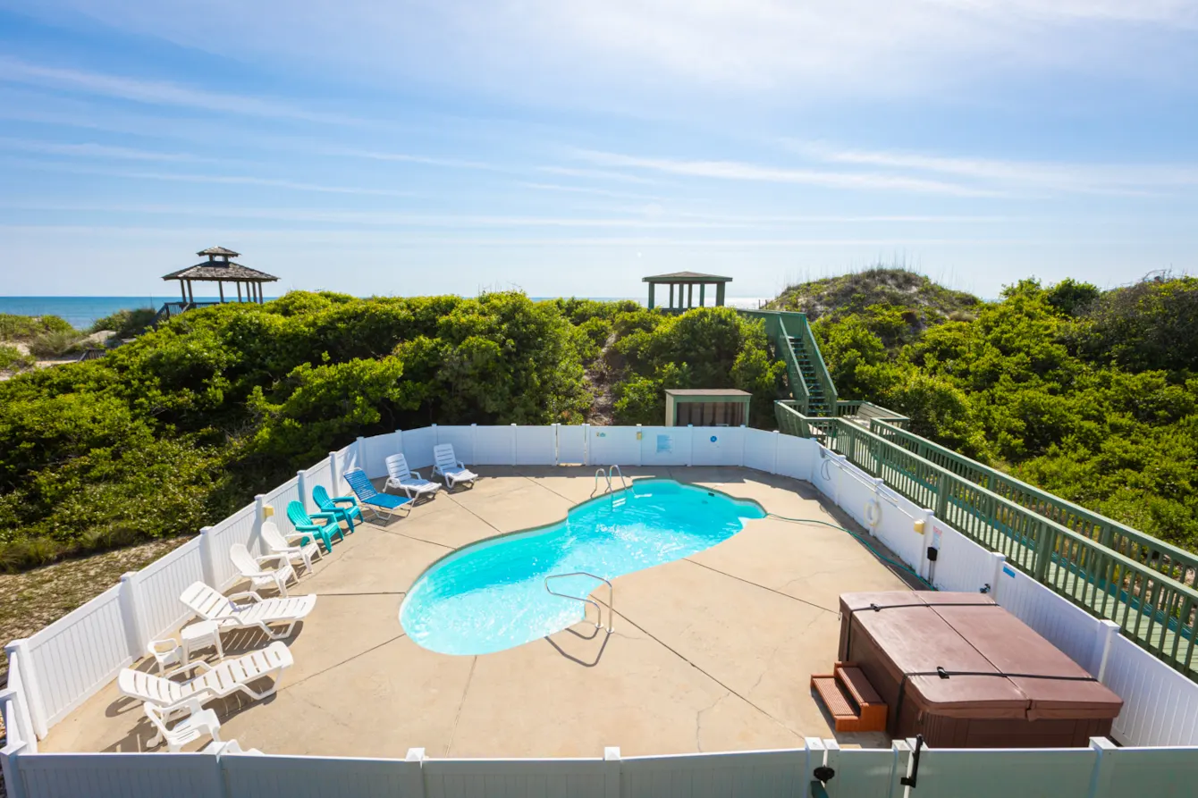 "The private entrance to the beach was great. Since it was off season we basically had the area by the house to ourselves. It's also close enough to town and the food lion to have everything we needed. We always love having a hot tub and private pool and for the price it was the best option. We will be staying here again same time next year."