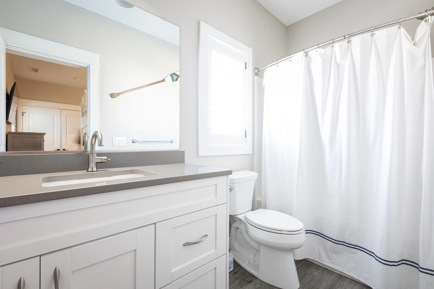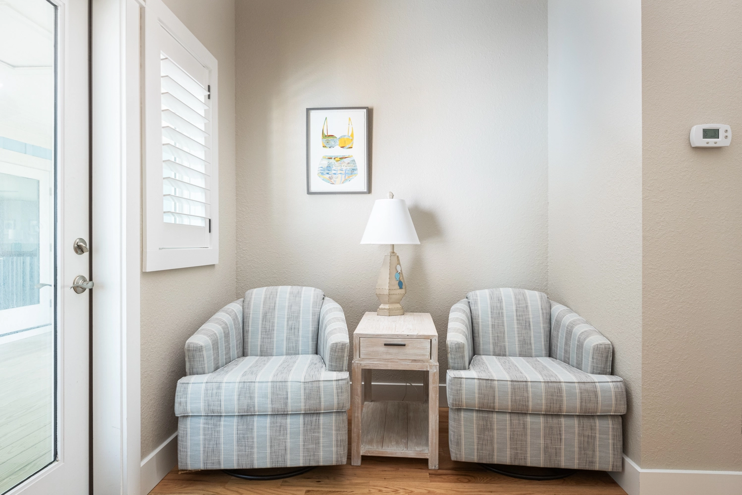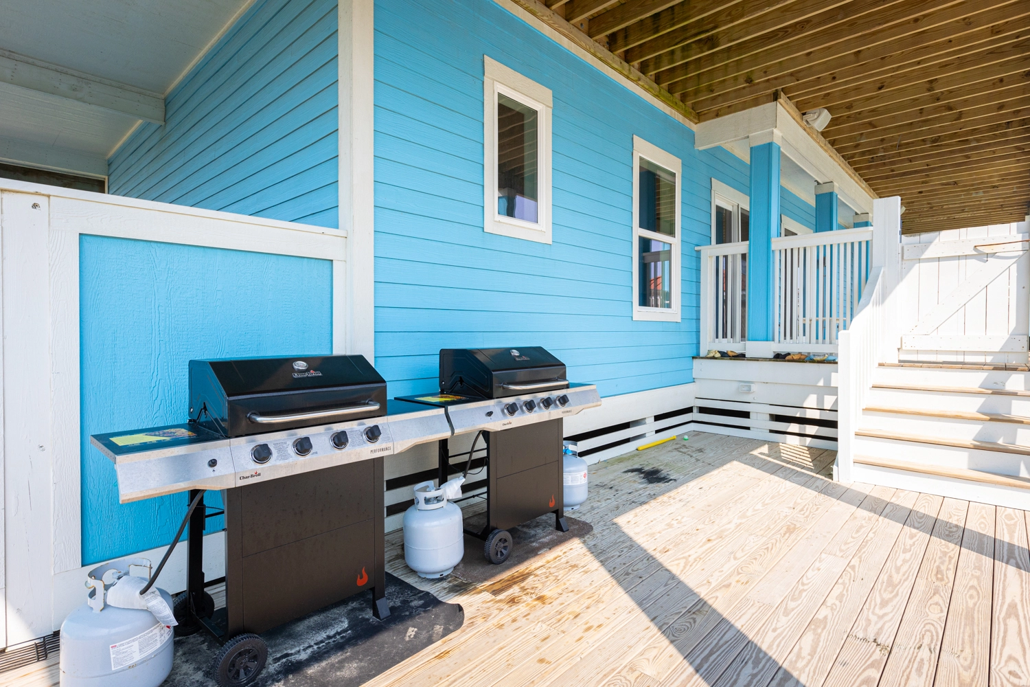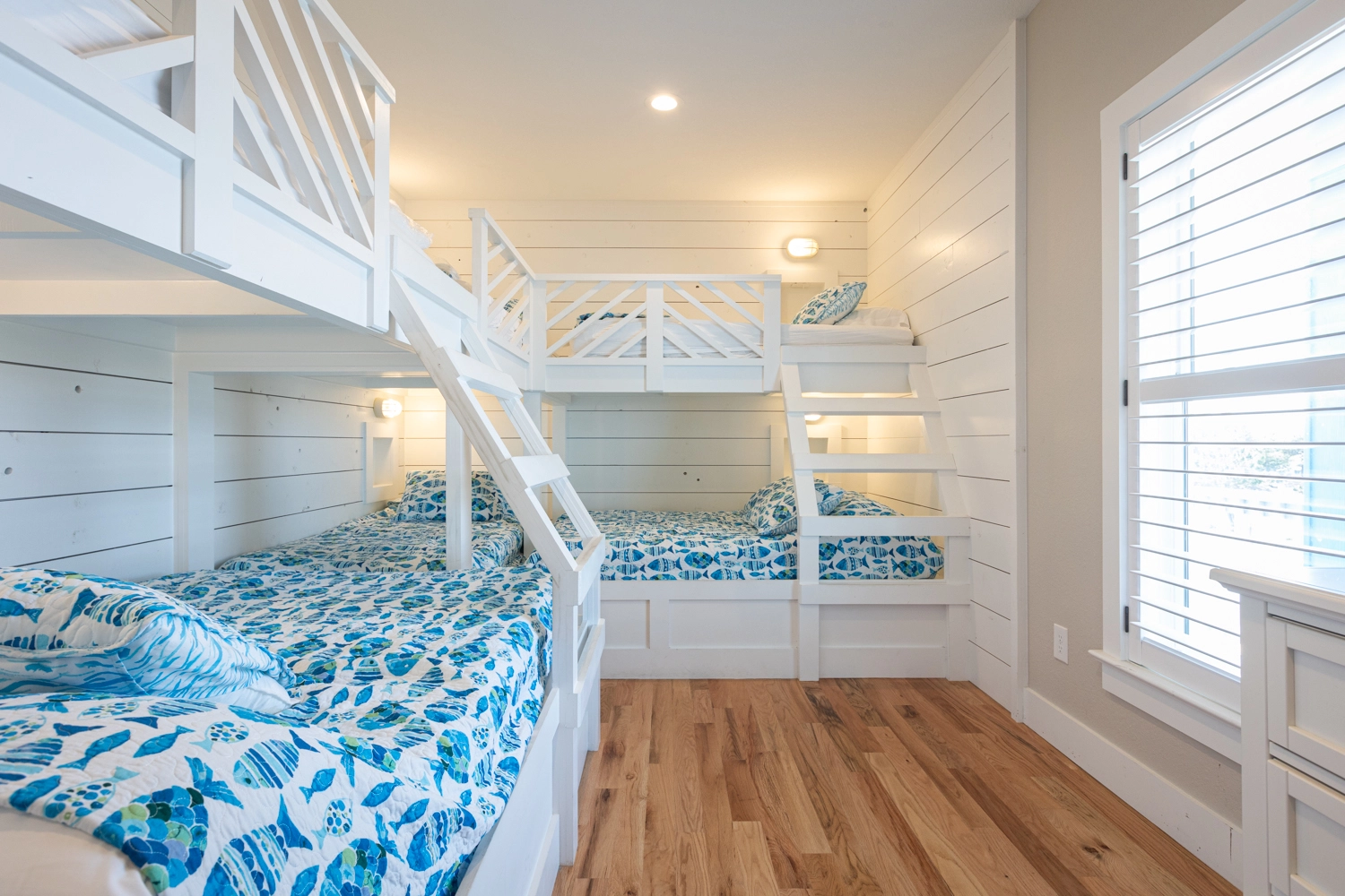 "We loved the beachfront location and the close proximity to a grocery store and a few shops. Sunrises were spectacular! The rooms were spacious and very comfortable. The double refrigerators in the kitchen plus two more large refrigerators on other floors was a big bonus, as were the double sets of washers and dryers. The 3rd floor great room with its deck was spacious enough to accomodate our entire group without feeling over crowded. The separate guest quarters with their own small fridge and microwave in their sitting areas were a blessing to those with a need to have a quieter space while just being across a covered porch from the main house were awesome."