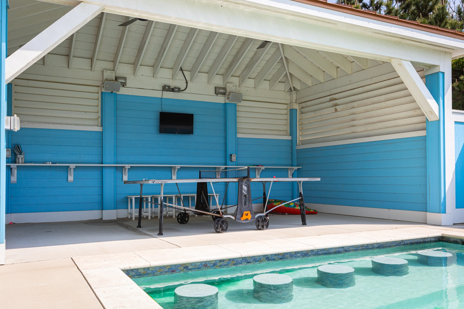 Elevator, gated private pool, poolside cabana, hot tub, gas grill, outdoor ping pong, cornhole set, horseshoes.