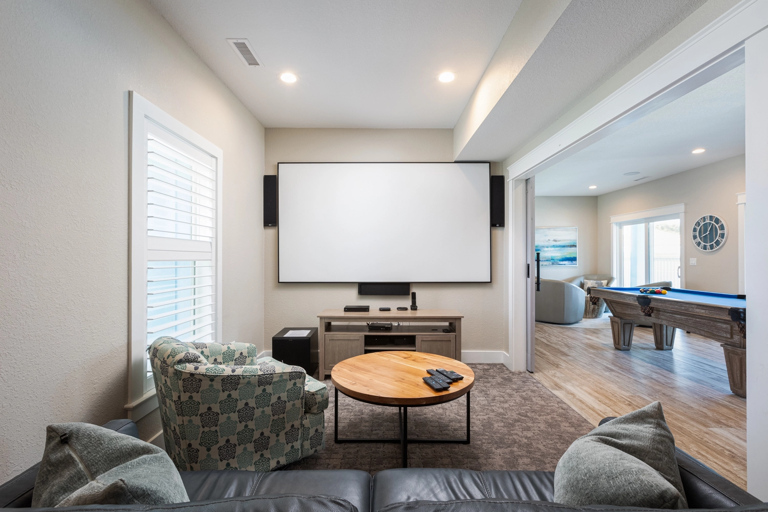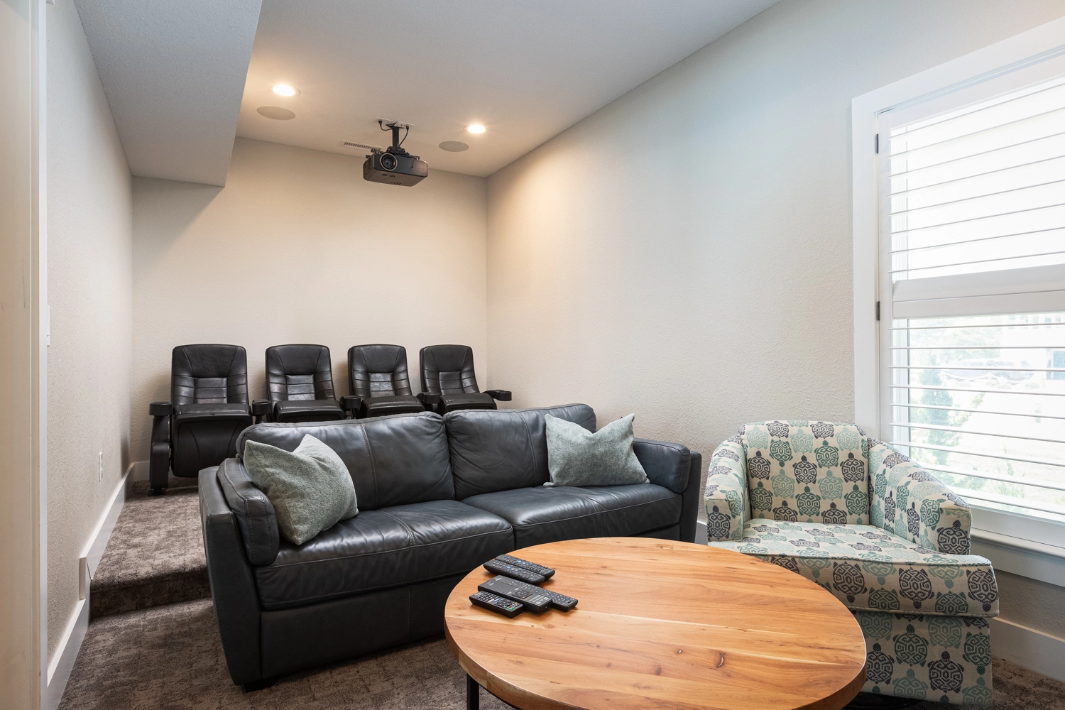 Theatre room; rec room with pool table, kitchenette with refrigerator and dishwasher; laundry.
