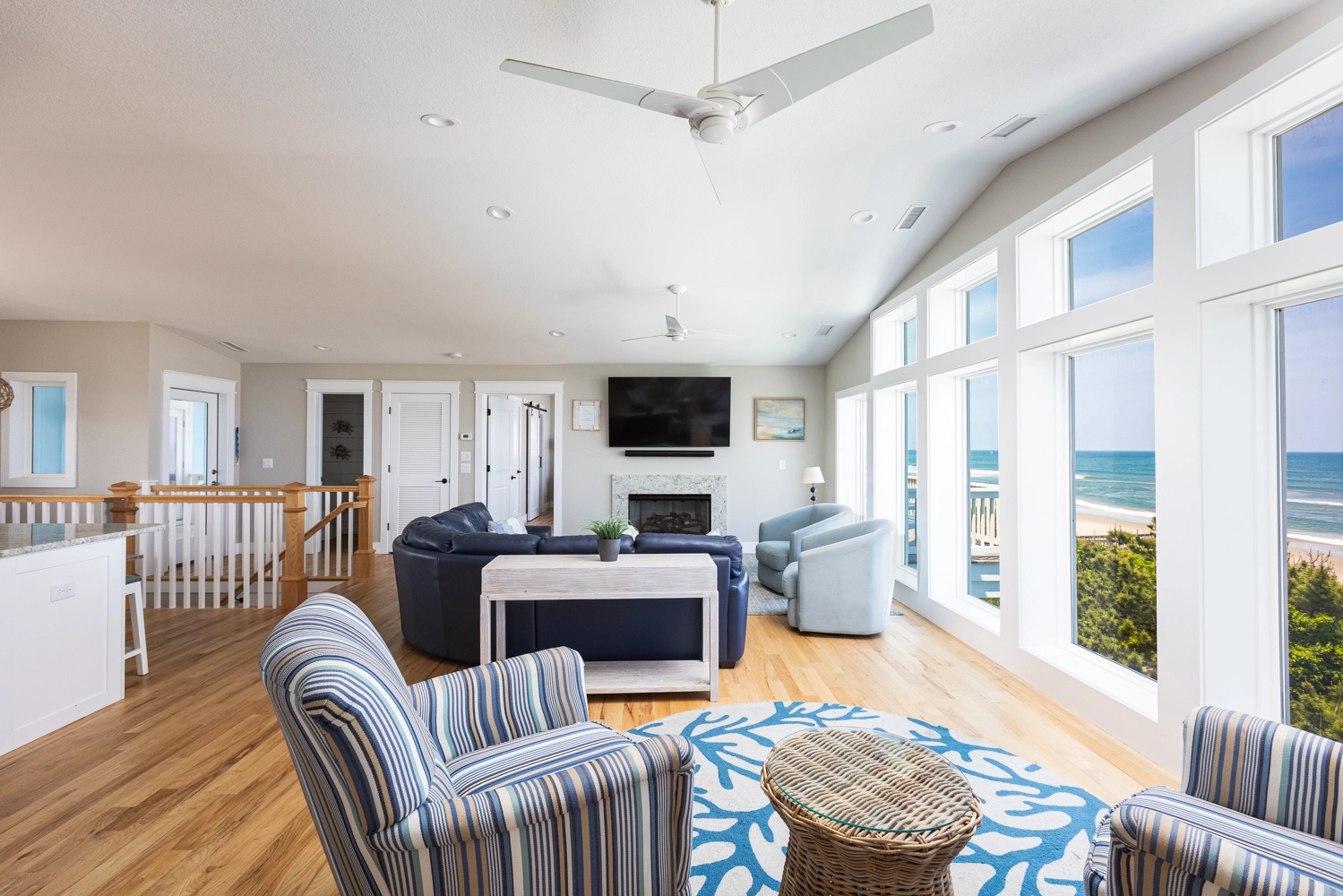 "The home has probably the best and most extensive ocean view in the OBX! Quality construction, design and decor are clearly evident. We loved the artwork and that the home is supplied with everything needed for an enjoyable stay. (Except a beach umbrella and there was only one beach chair)"