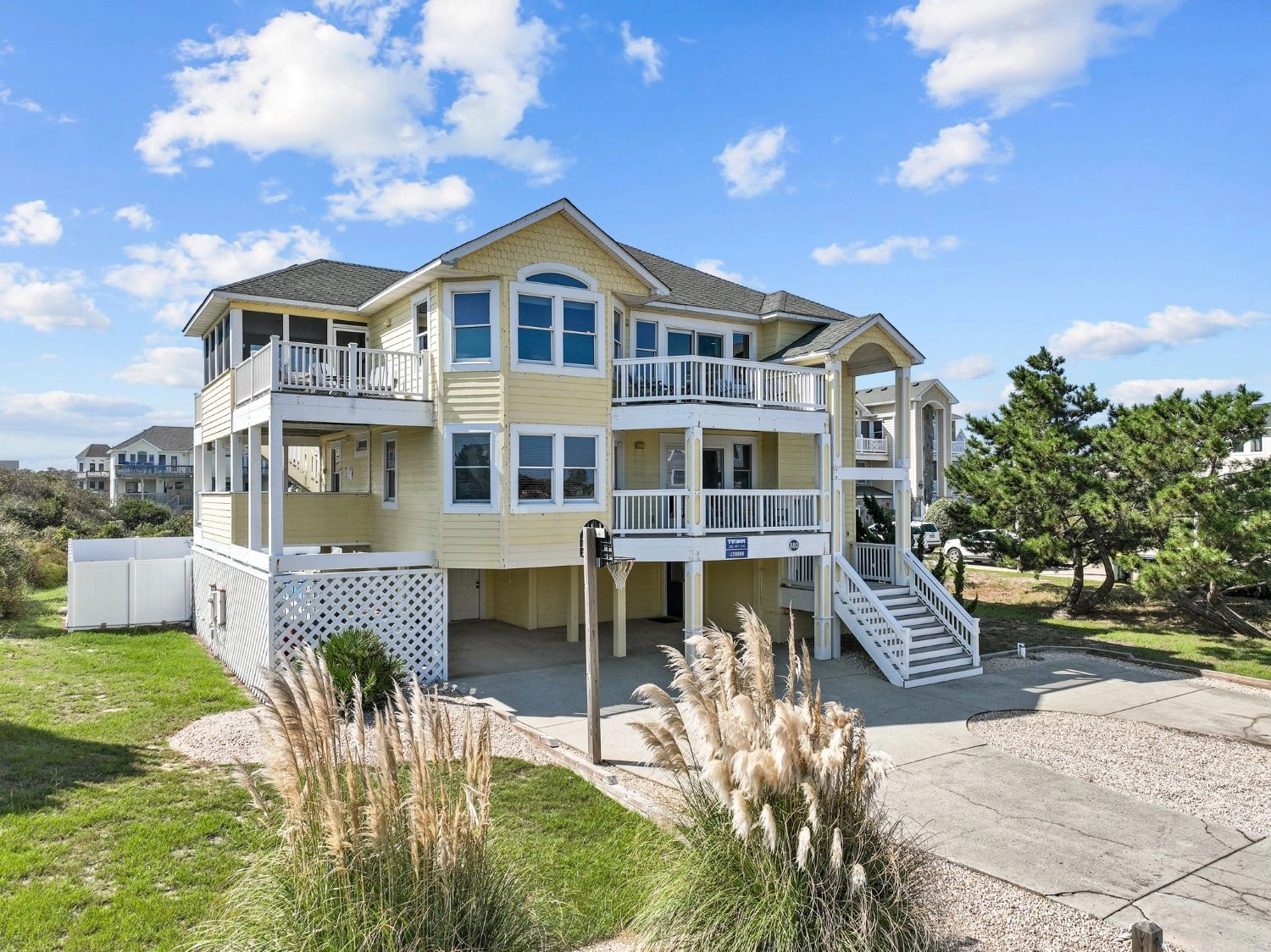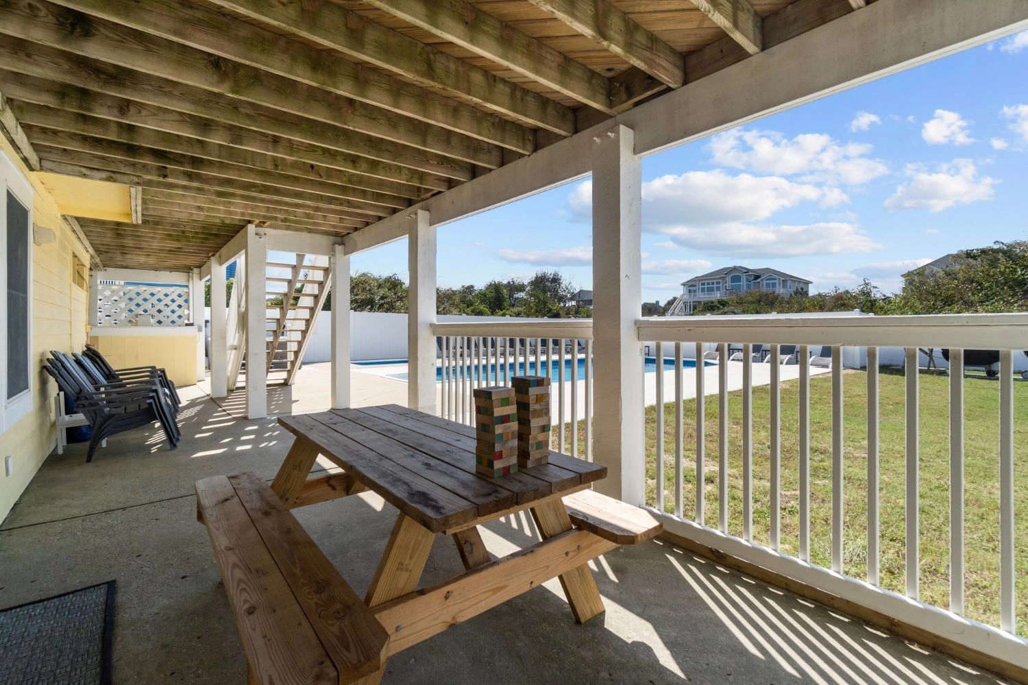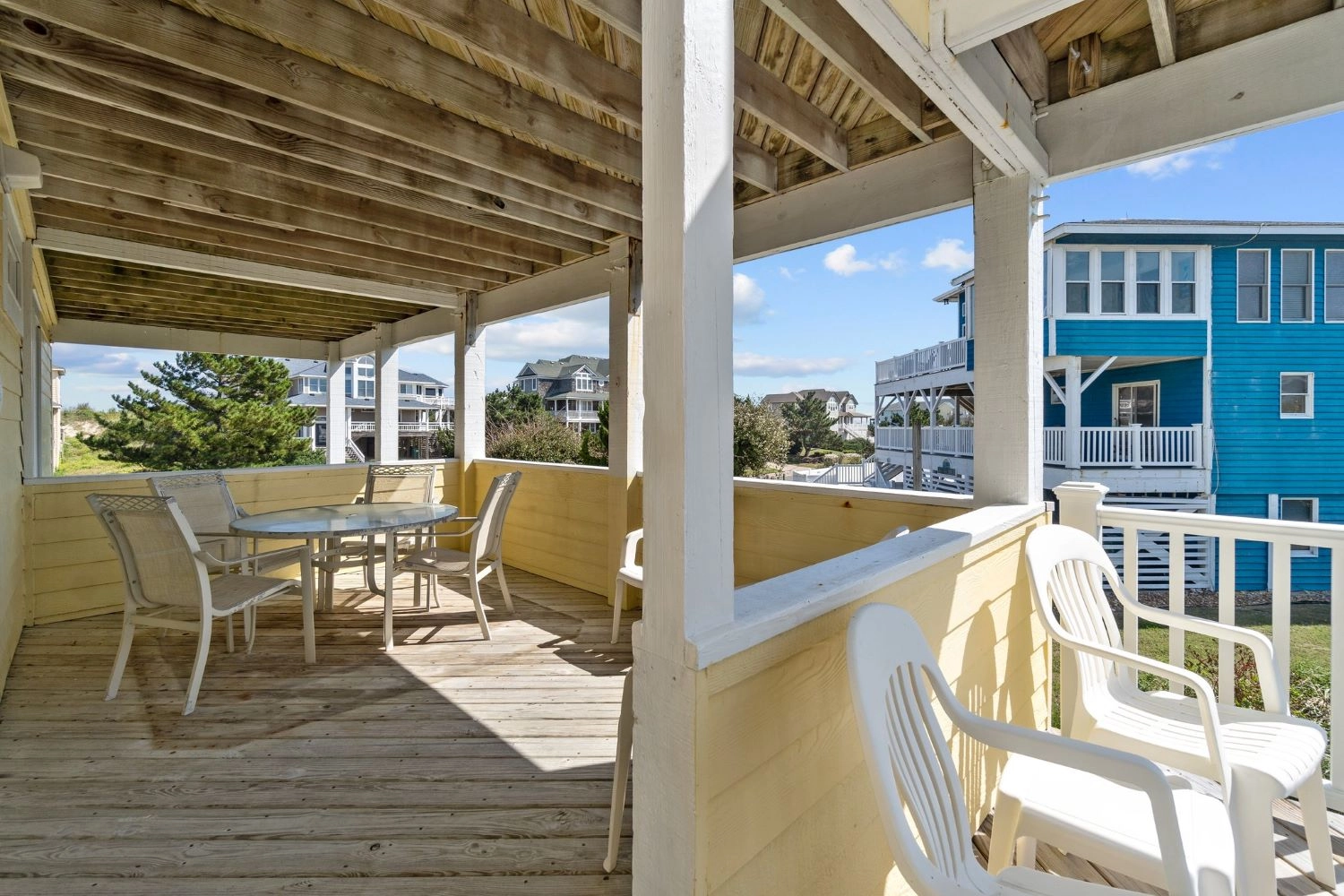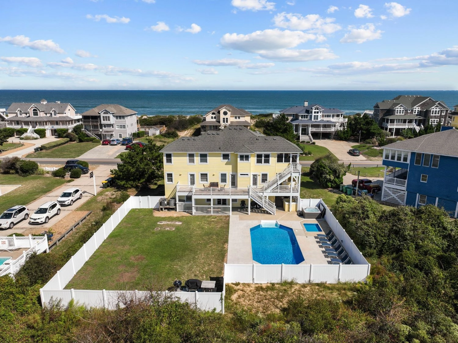 "We loved this house! It comfortably fit three generations of a large family. The pool is very nice and large, and the deck access to the pool is very nice. The view of the ocean is one of the best for a semi-oceanfront that I have seen, and the screened in porch was a hit for card games. The beach access is less than a 3 minute walk away. I would definitely stay here again with my family!"