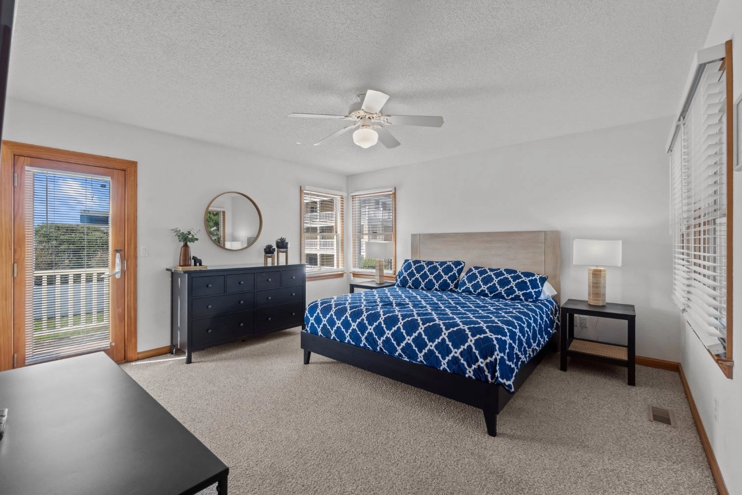 King, Standing shower, Whirlpool tub, Deck access