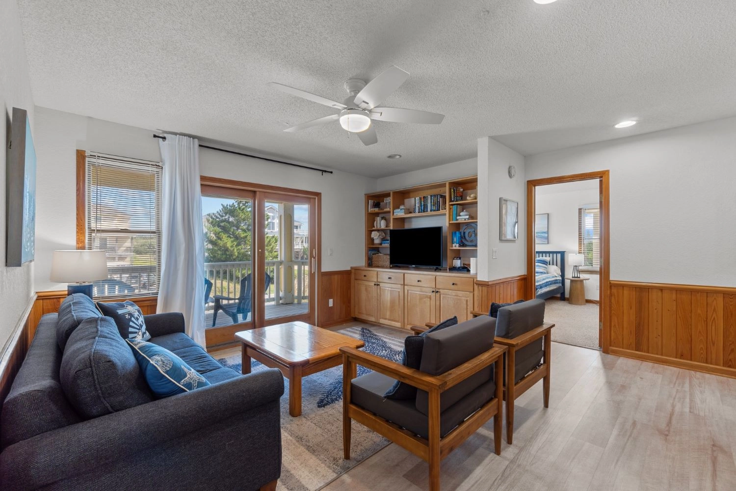 Den (QSS) with deck access; deck; screened porch.