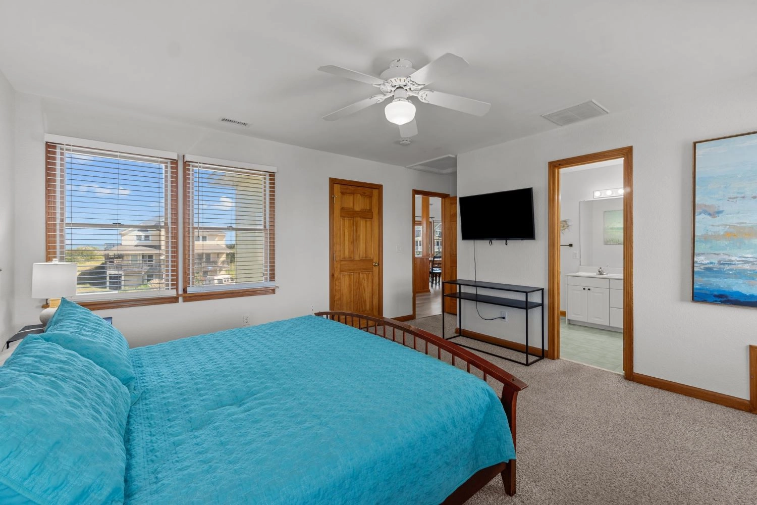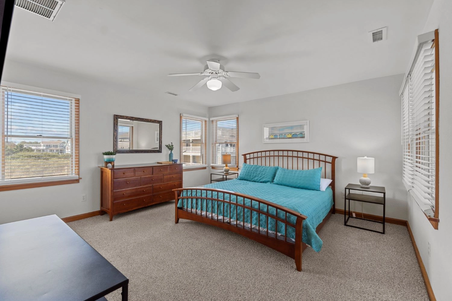 "Well equipped and comfortable. Short walk to the beach and loved the ocean views. Plenty of room. Beds comfortable and lots of bathrooms"