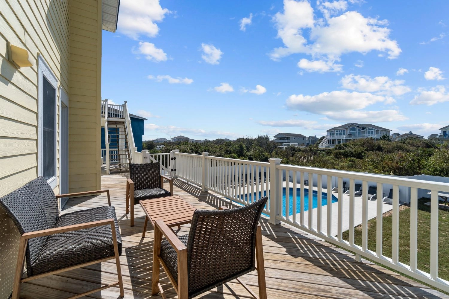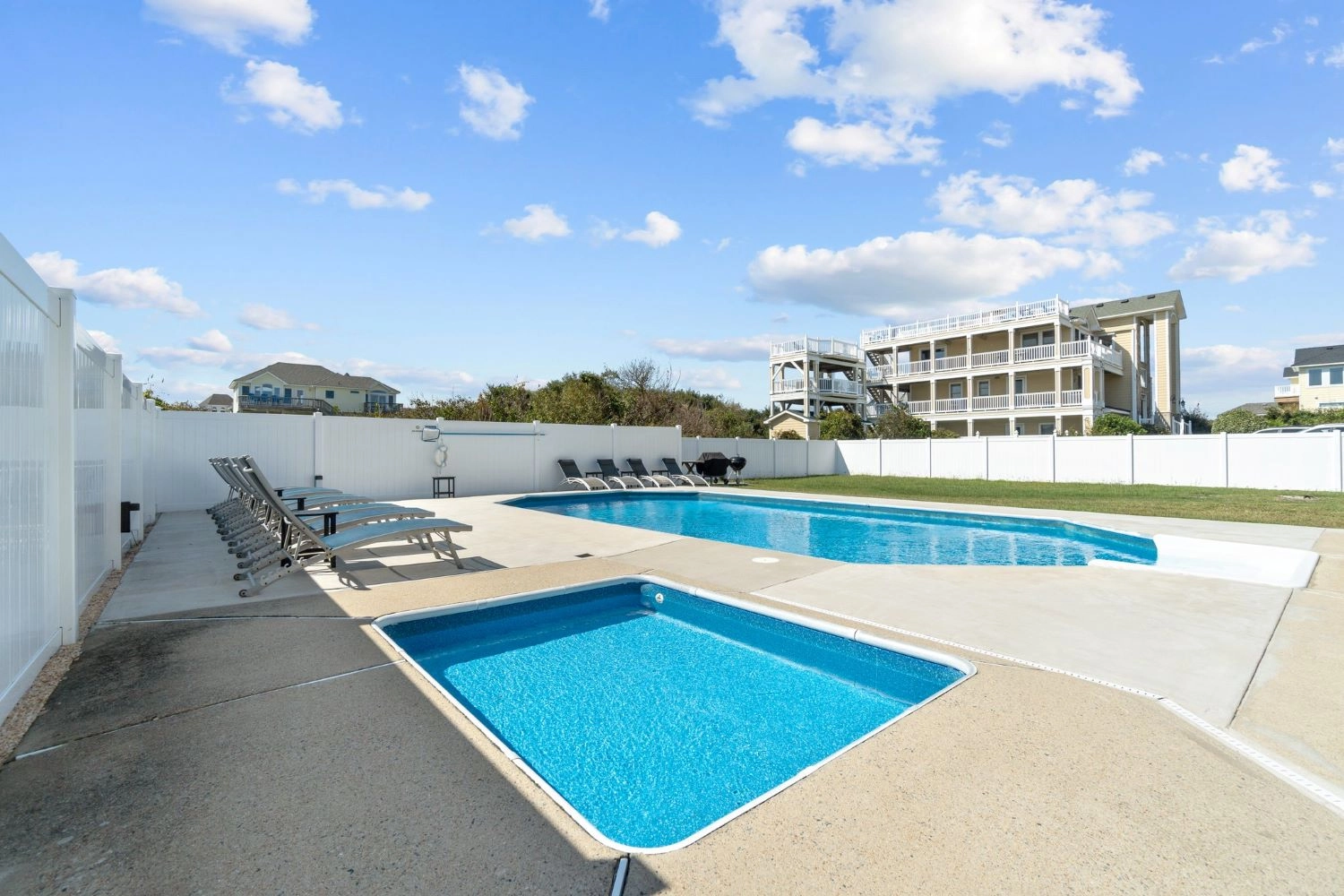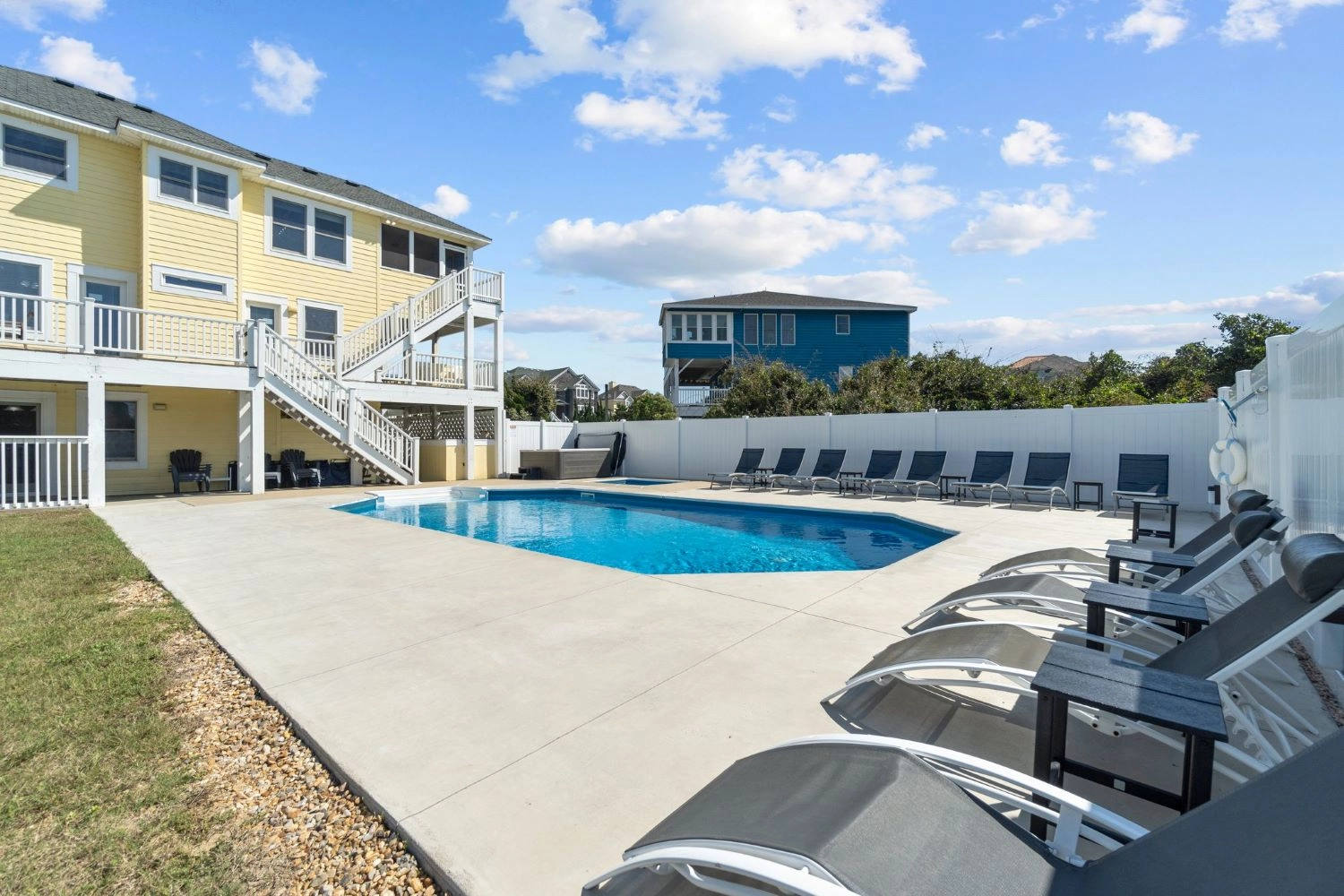"We had a great week at Easy Does It. Our 5th different house in OBX and by far our favorite. The exterior and decks are pretty weathered and the sliding doors are a bit rough. That's the only reason for 4 star rating. The interior was great. New floors and upgraded appliances really make a big difference. Beds were soft and comfortable, great kitchen and living room layout, well stocked kitchen and utensils, and a great pool area with good seating. Finally great location with less than 5 min walk to the beach. If you're on the fence, book it."