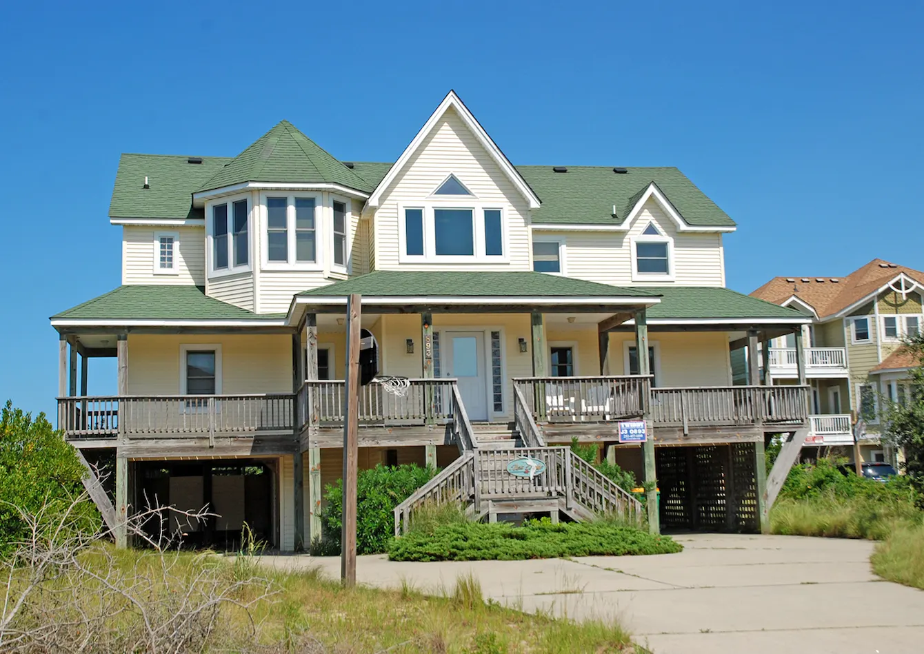 "House was very nice, loved the open living room and the decks. Also very well stocked with all kitchen utensils and the location to the beach access path was super convenient. Only recommendation would be to mow the yard, grass was grown up a lot. We wanted to play corn hole out there, but the grass was just too high."