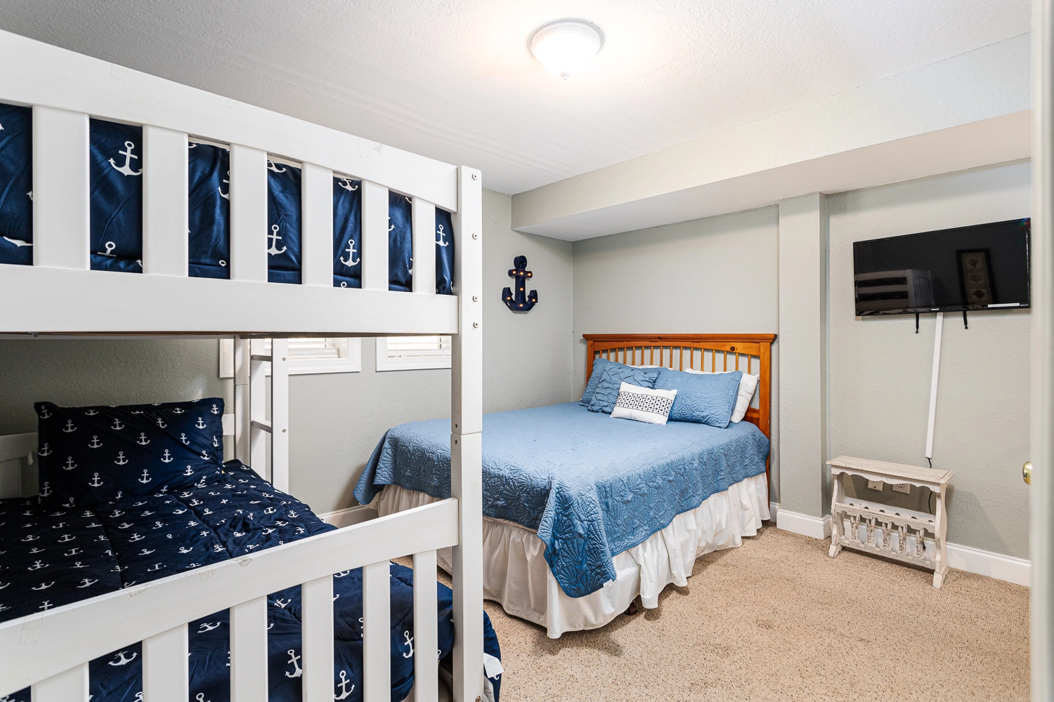 Queen, Bunk Set, Shared bath with room 1, Shower/tub combo