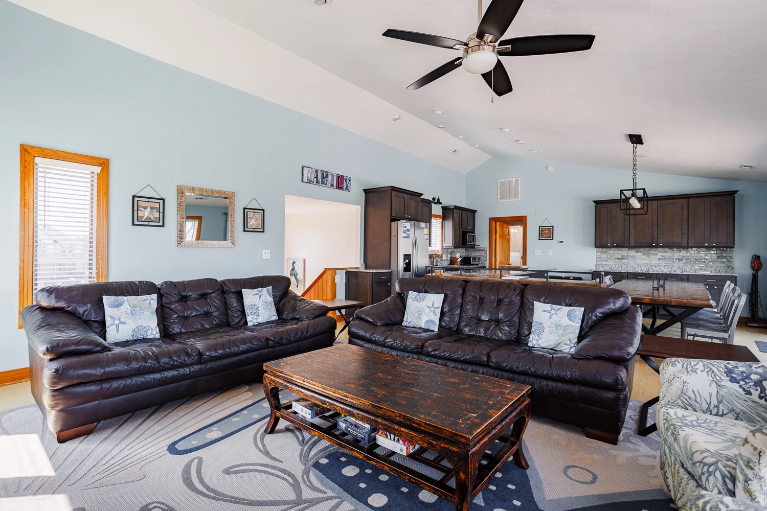"Kitchen had everything you need! Kitchen table fit all our guest and plenty of seating outside as well . Pool was heated and perfect! House was right next to beach walk way and very short walk to beach. This was great , on sunny days we had short walk to beach and on windy days we still could enjoy the pool at the house. Living room furniture was very cozy."