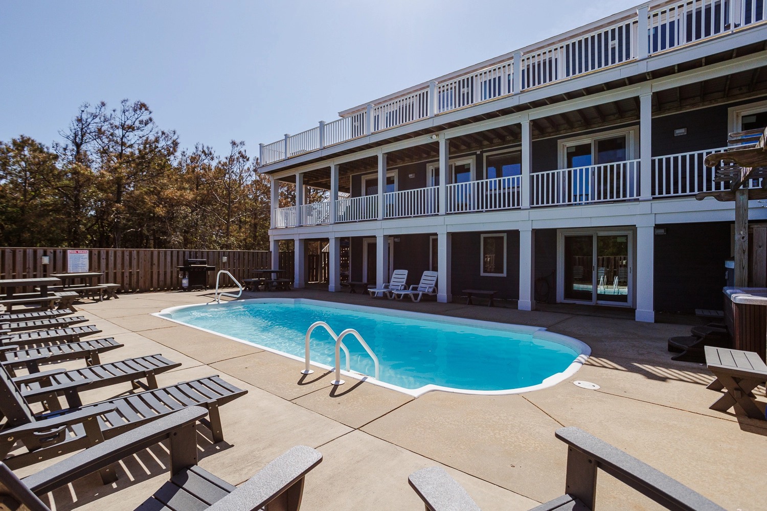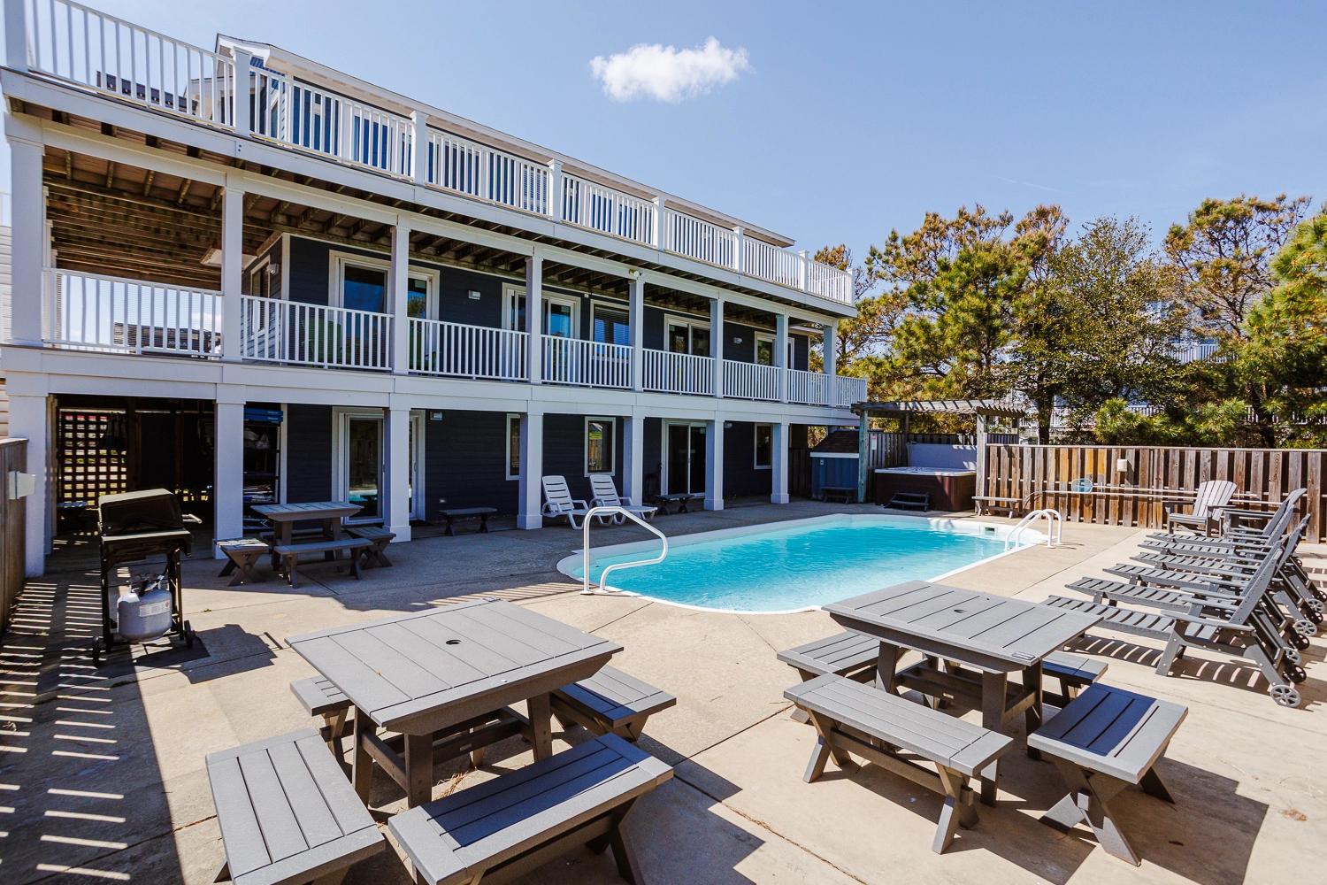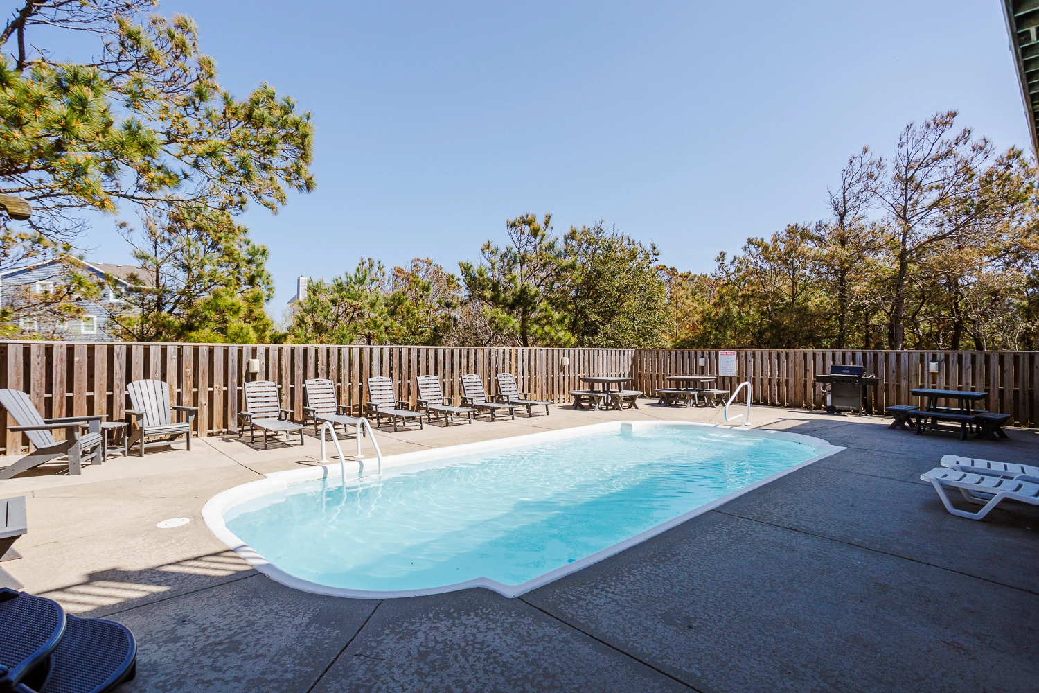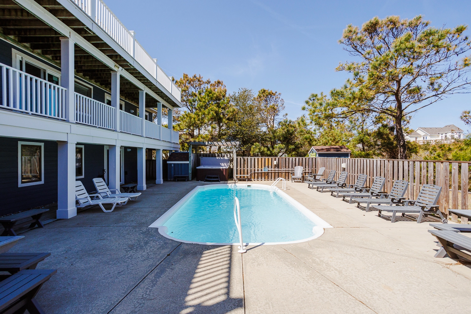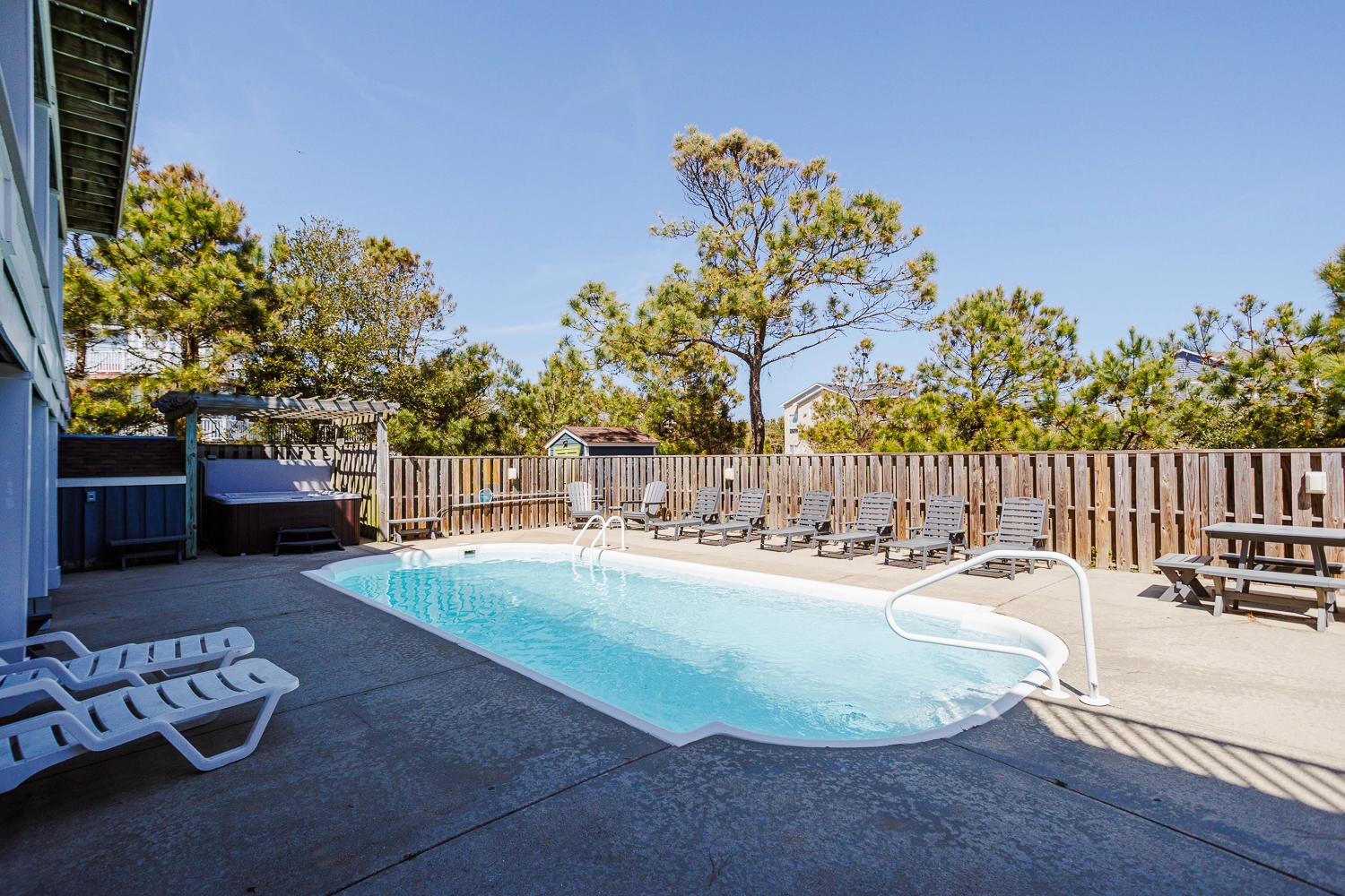 "The close proximity and easy walk to the beach access, as well as being a somewhat casual but nicely appointed home with plenty of beds/bathrooms for a large gathering of people make Family Tides a desirable oceanside choice in Corolla. The pool, hot tub, and volleyball court add to the outdoor fun options."